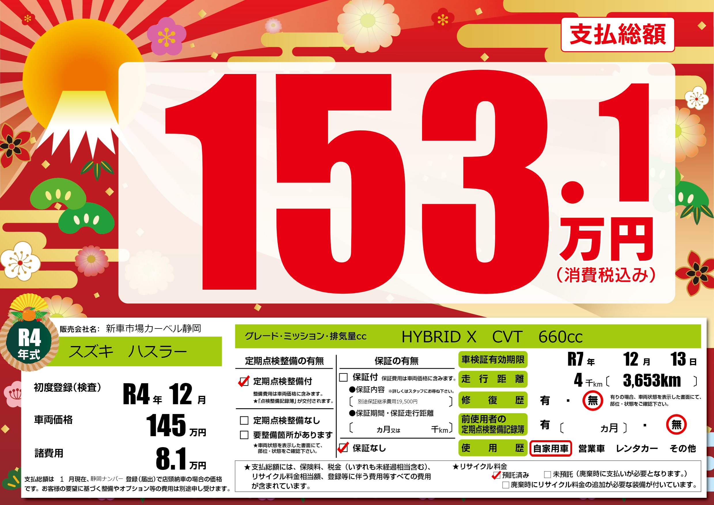 | 走行キロ | 0.4万km | 初年度登録 | R4年12月 |