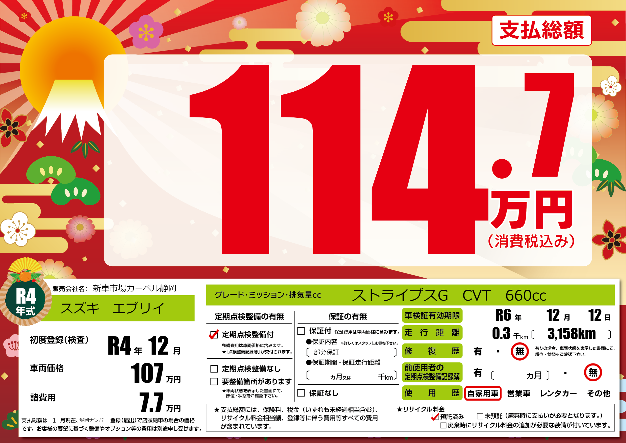 | 走行キロ | - | 初年度登録 | R4年12月 |