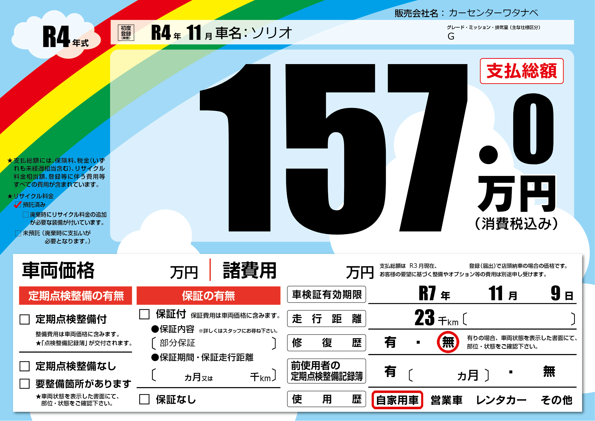| 車名 | ソリオ | グレード ミッション 排気量 |