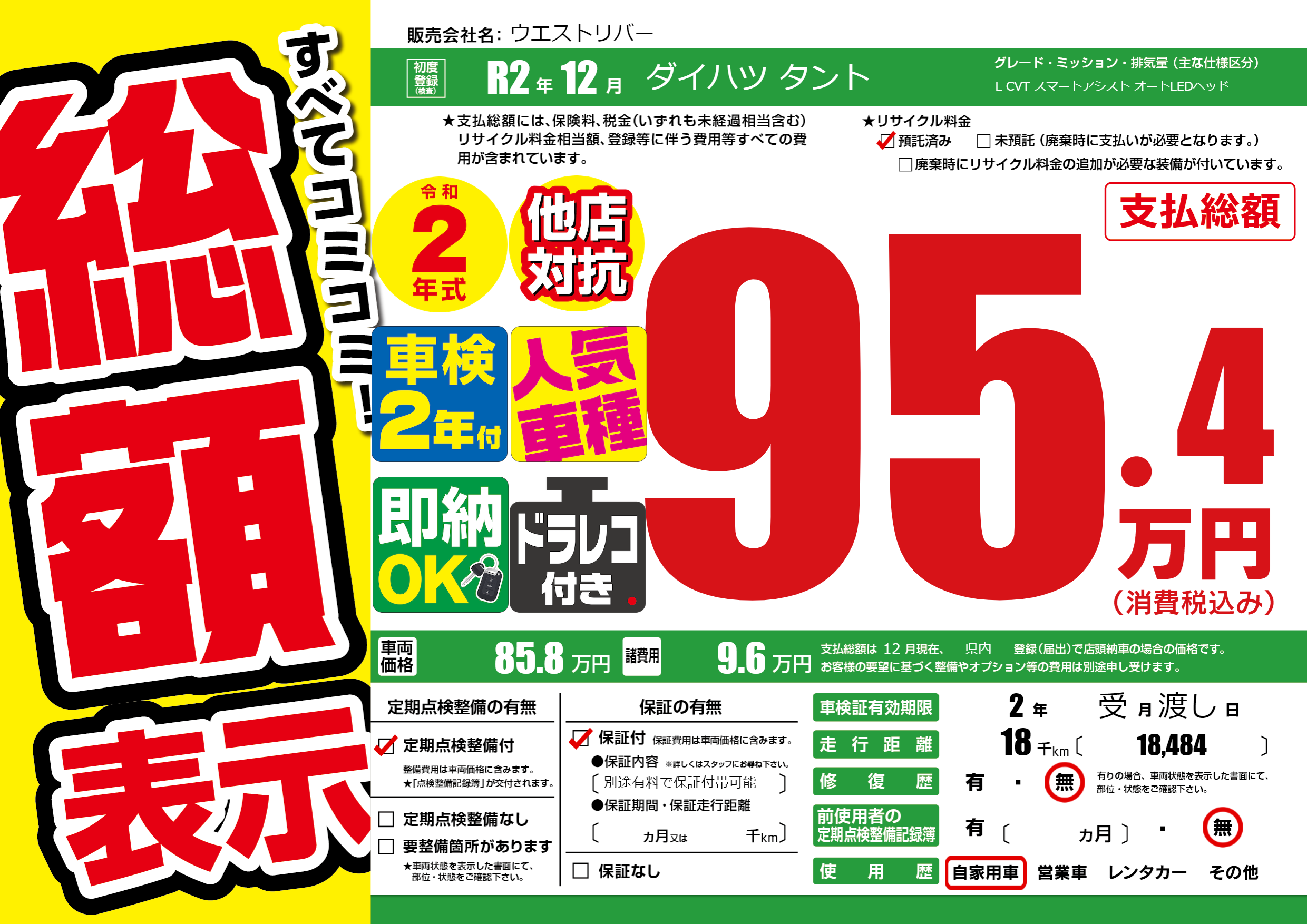 | 車検制限 | 2年 受月 渡し日 | ||