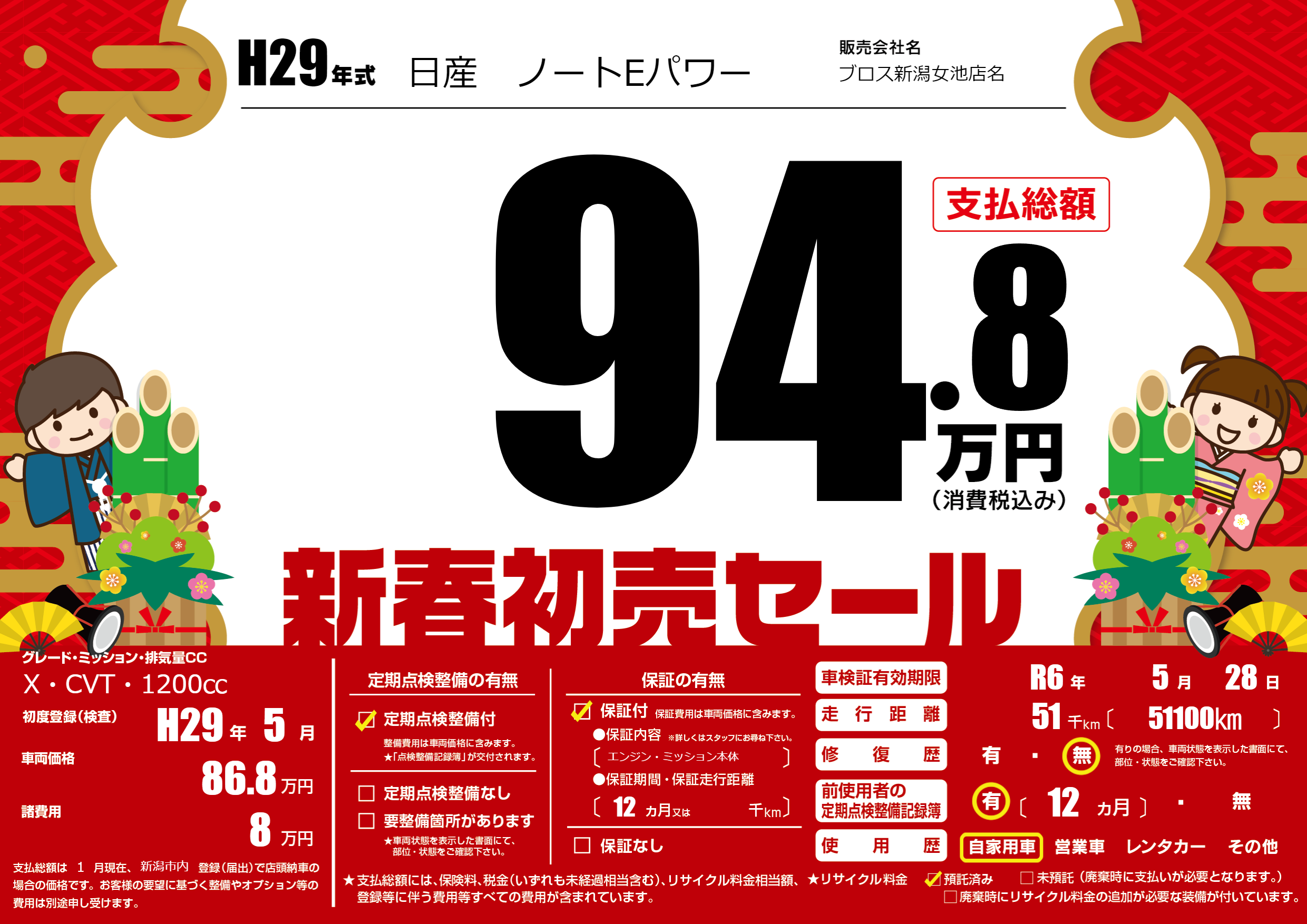 | 車名 | 日産 ノートEパワー | グレード ミッション 排気量 |