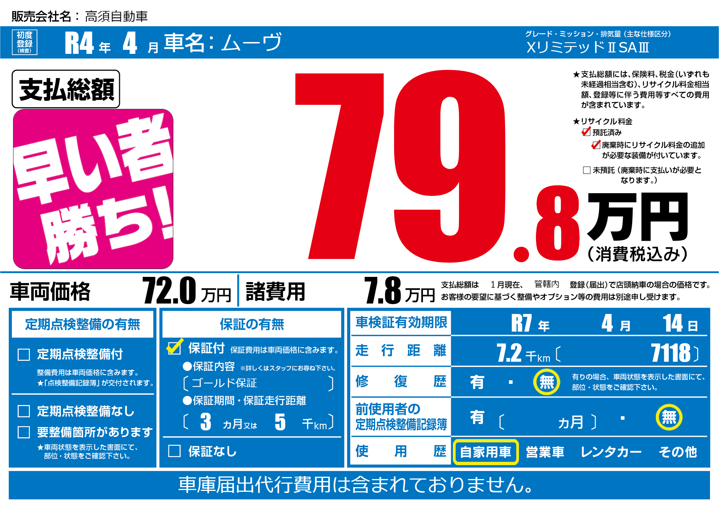 なし | 車検制限 | R7年4月14月 |