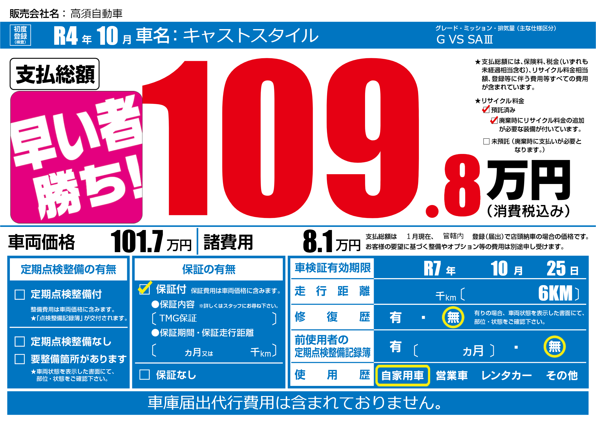 なし | 車検制限 | R7年10月25月 |