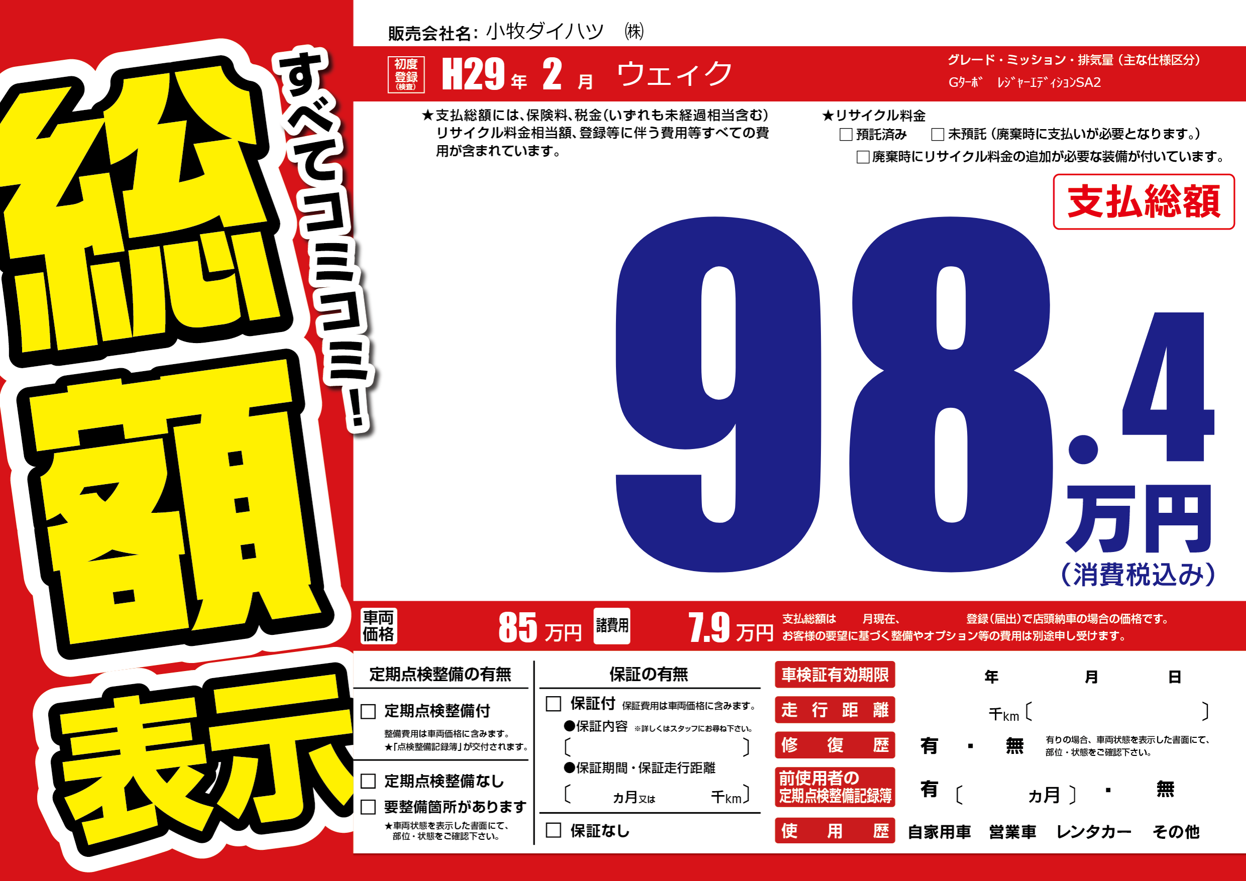 | 車名 | ウェィク | グレード ミッション 排気量 |