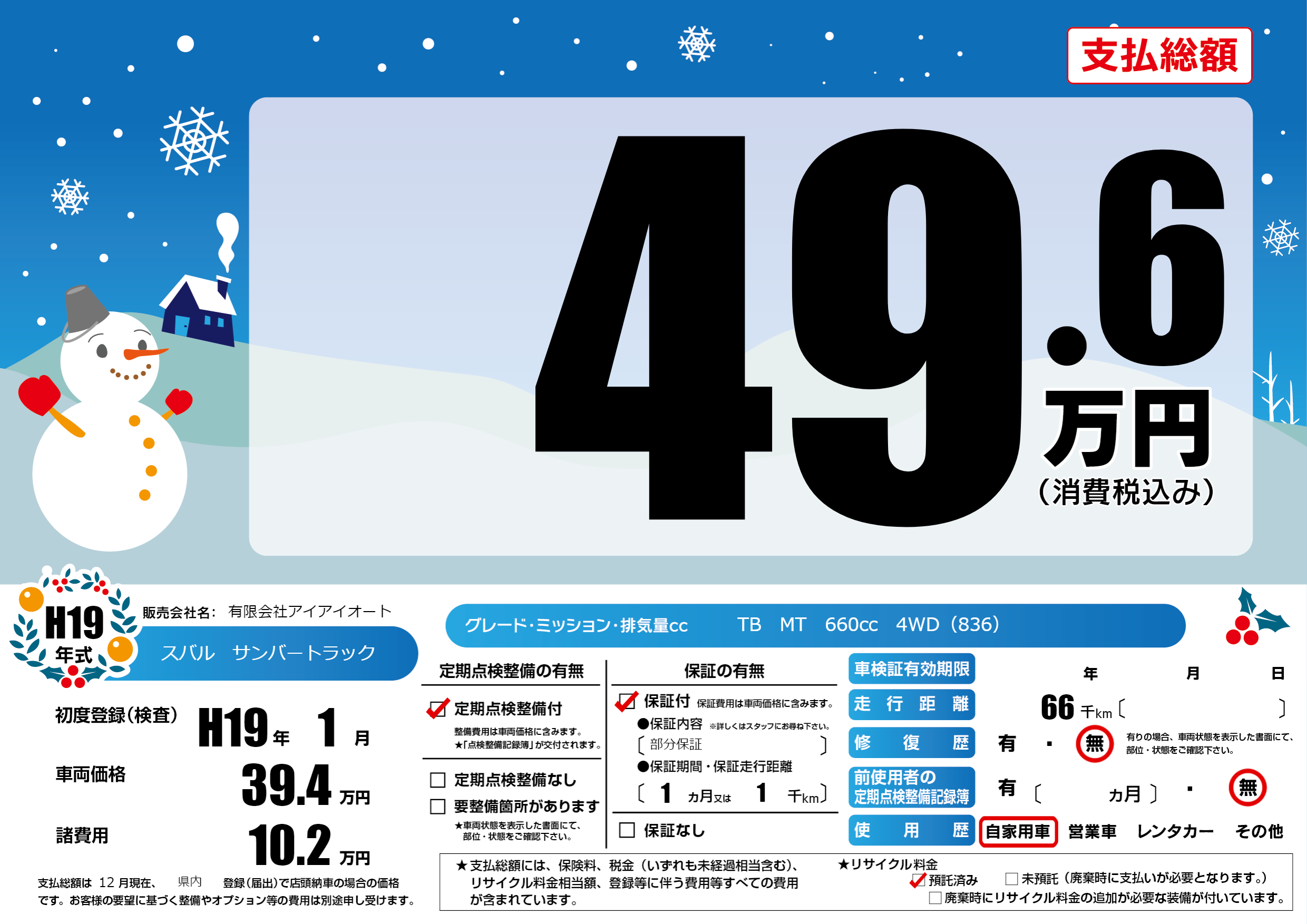 | 定期点検整備 | 定期点検整備あり | ||