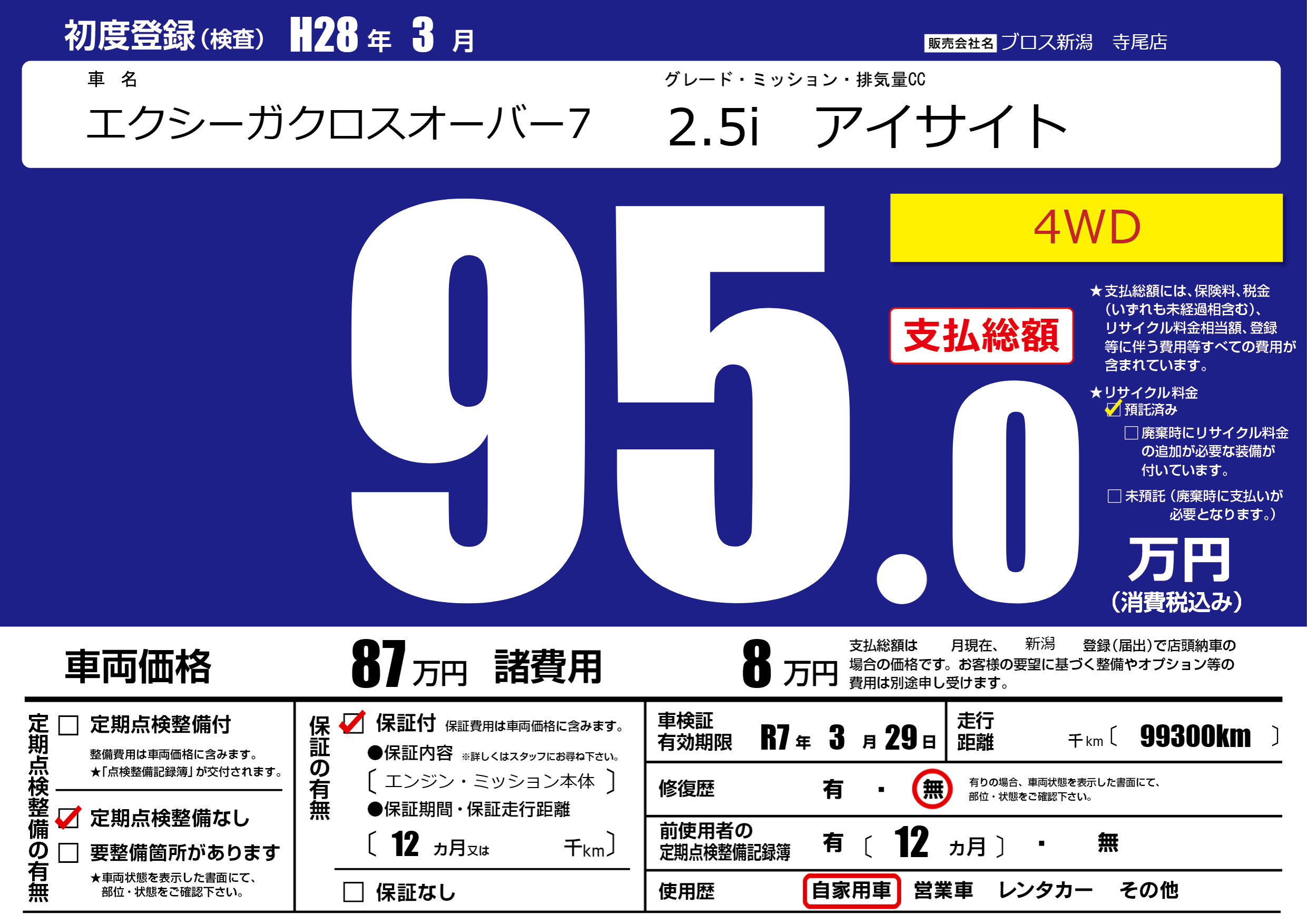 | 車検制限 | R7年 3月 29日 | ||