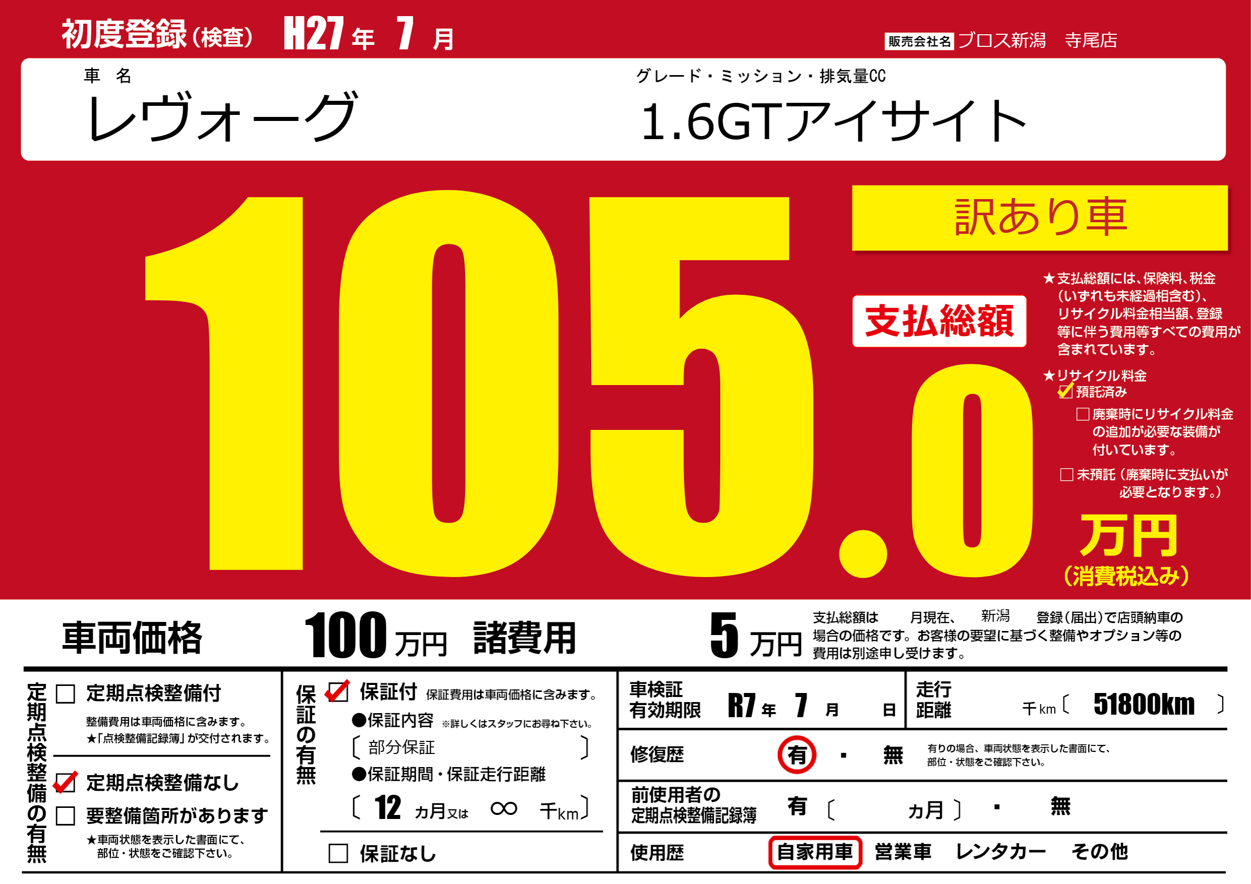 | 初年度登録 | H27年7月 | ||