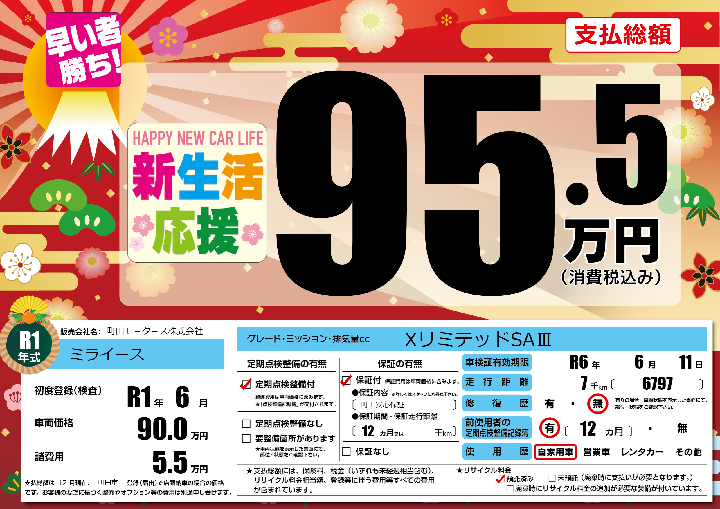 保証付き 保証内容(町モ安心保証) 12ヶ月または千km |