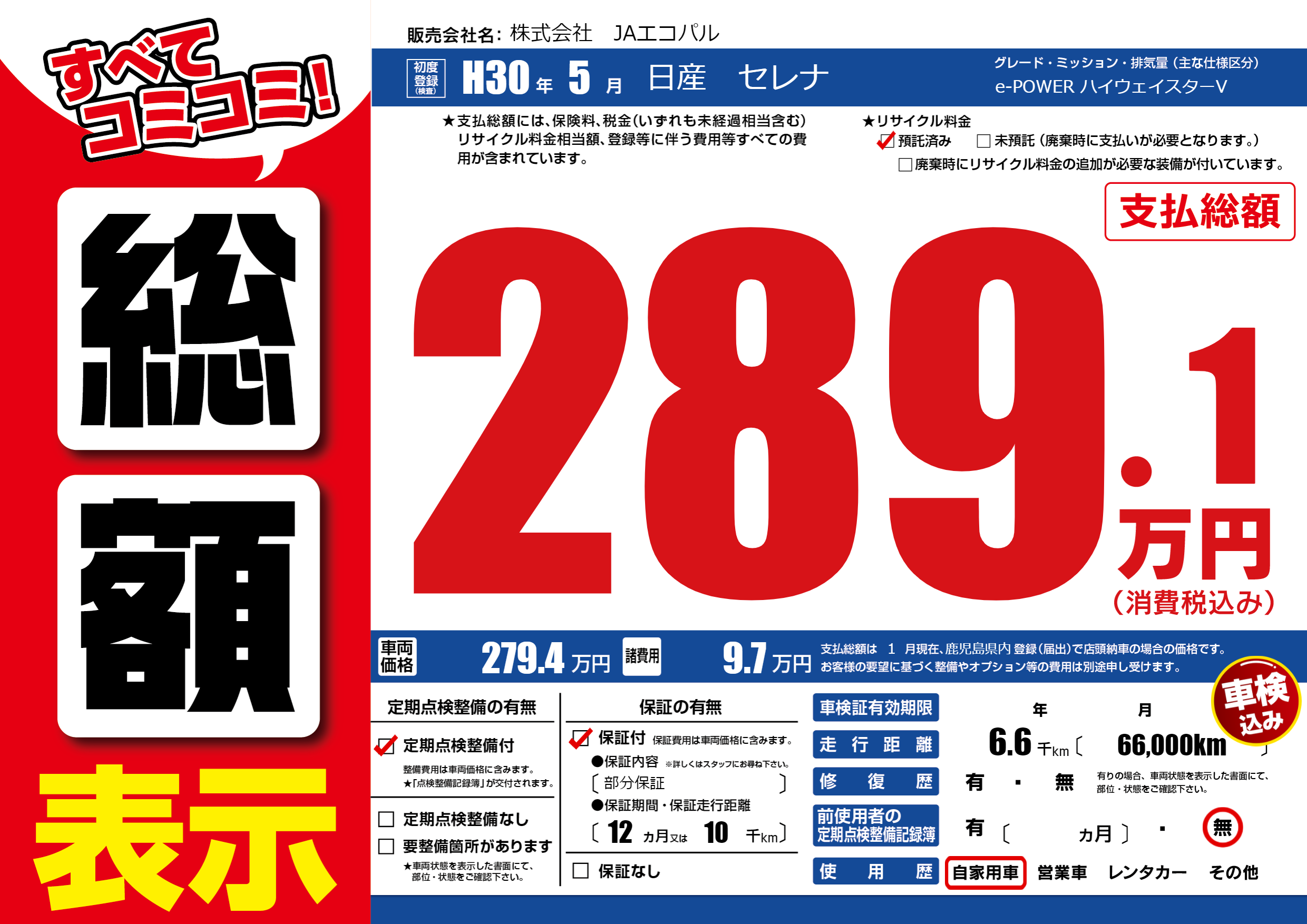 | 定期点検整備 | 定期点検整備あり | ||