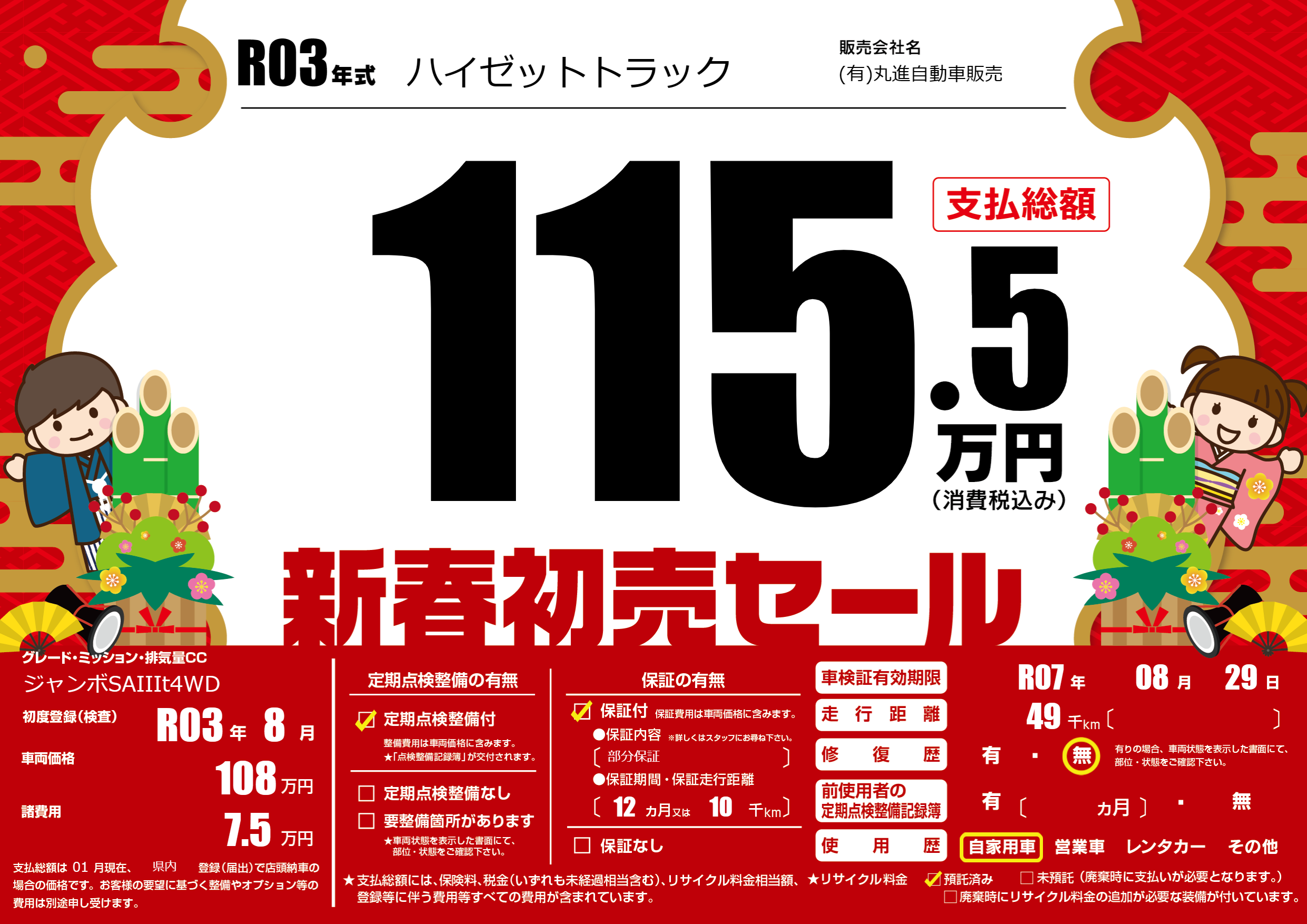 | 走行キロ | 4.9万km | 初年度登録 | R03年8月 |