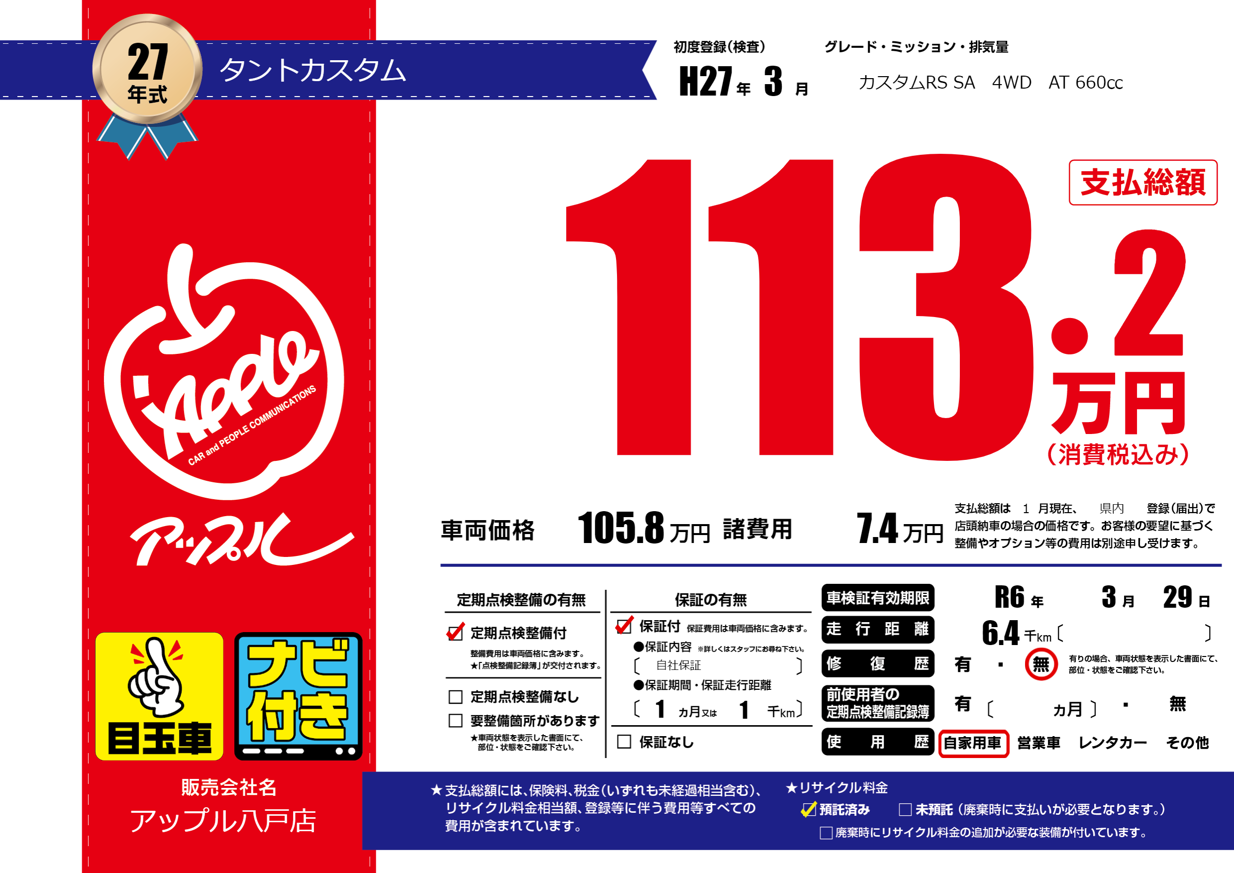なし | 車検制限 | R6年3月29月 |