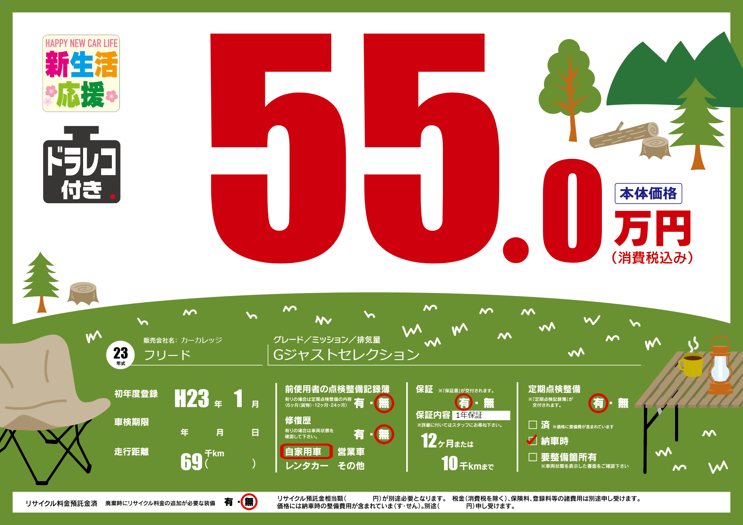 | 走行キロ | 6.9万km | 初年度登録 | H23年1月 |
