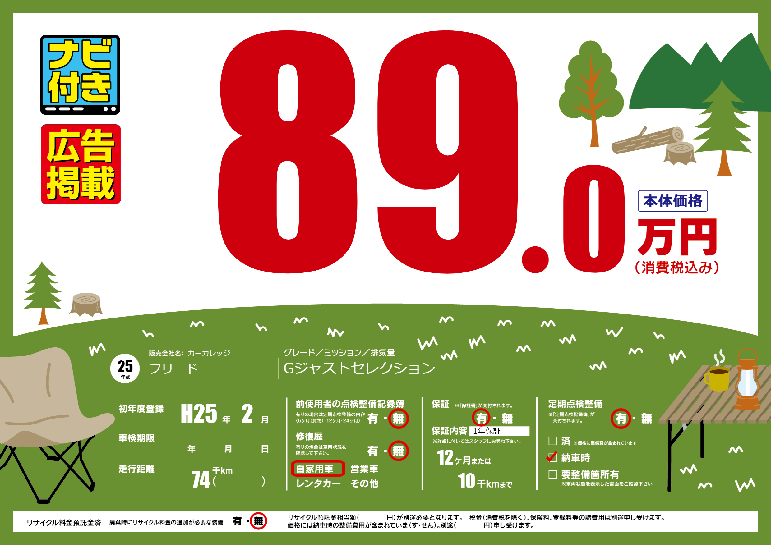 | 定期点検整備 | 定期点検整備あり 納車時あり | ||