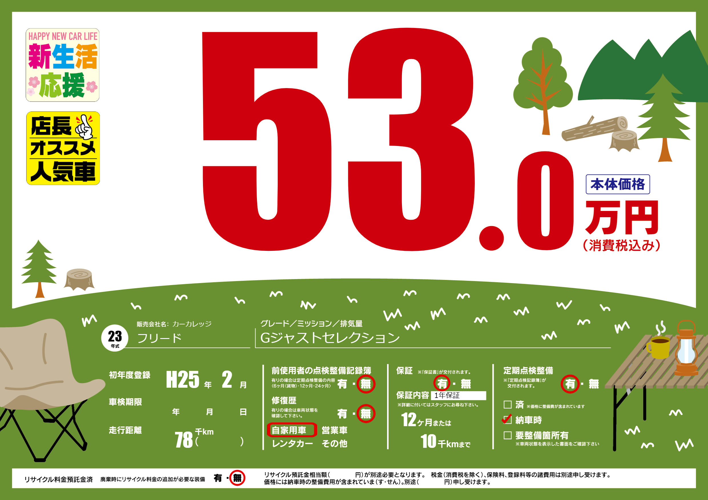 | 走行キロ | 7.8万km | 初年度登録 | H25年2月 |