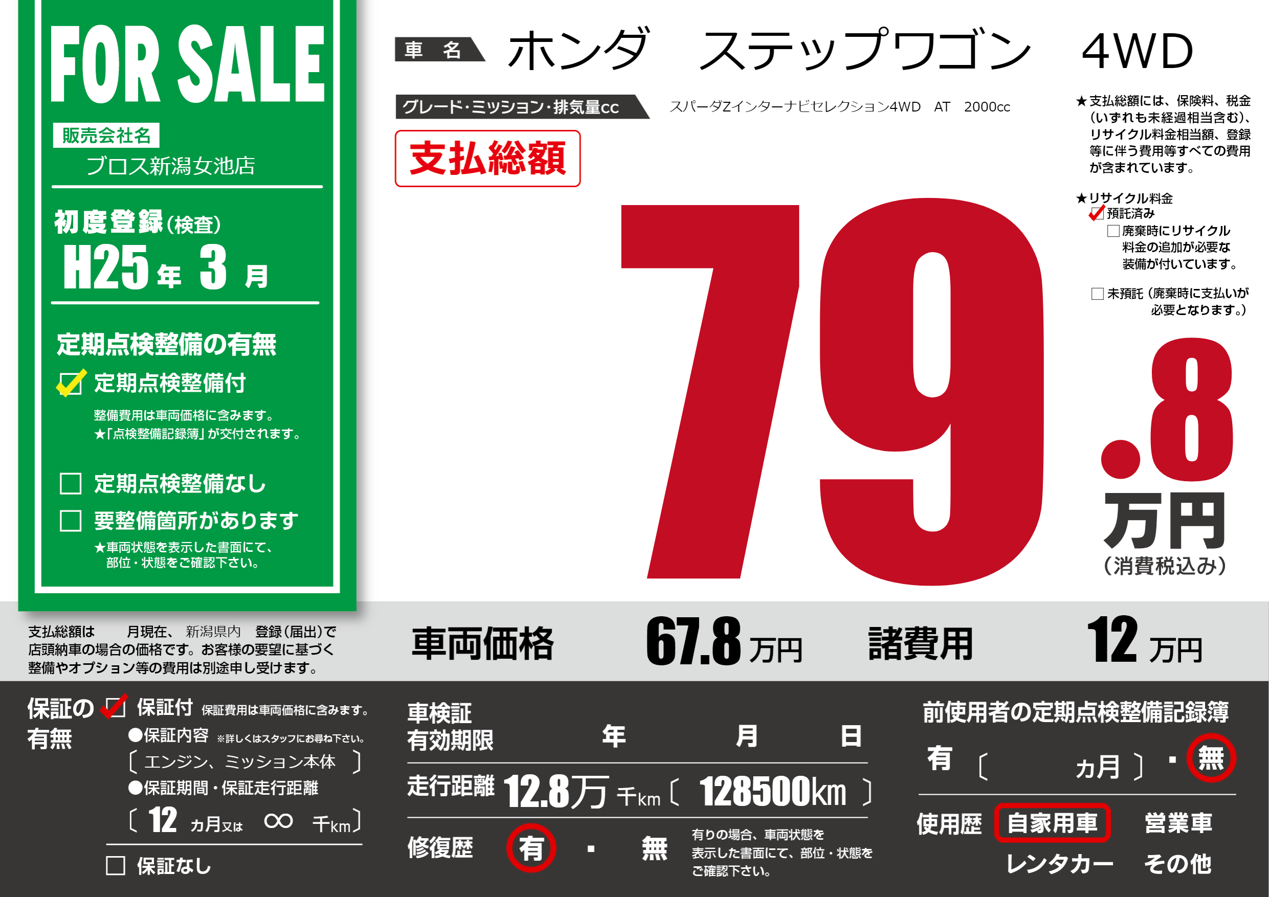 | 走行キロ | 1.2万km | 初年度登録 | H25年3月 |