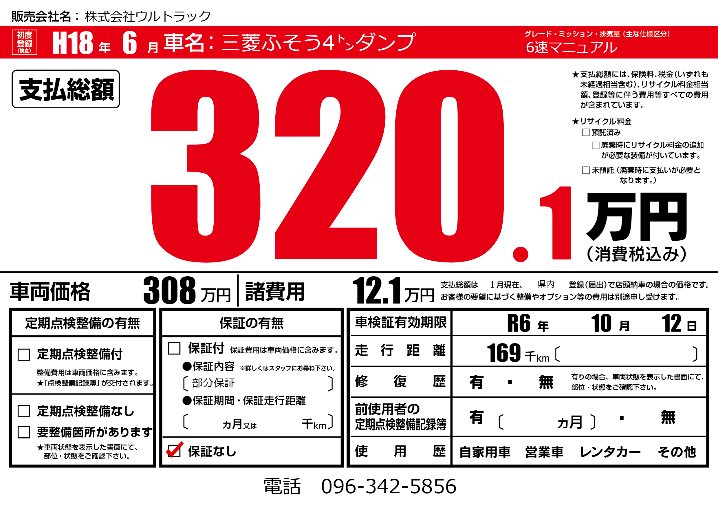 なし | 車検制限 | R6年10月12月 |