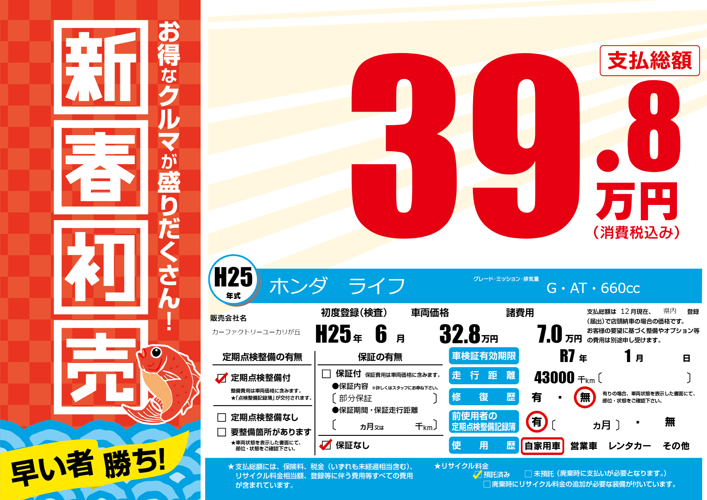 | 車検制限 | R7年 1月 - 日 | ||