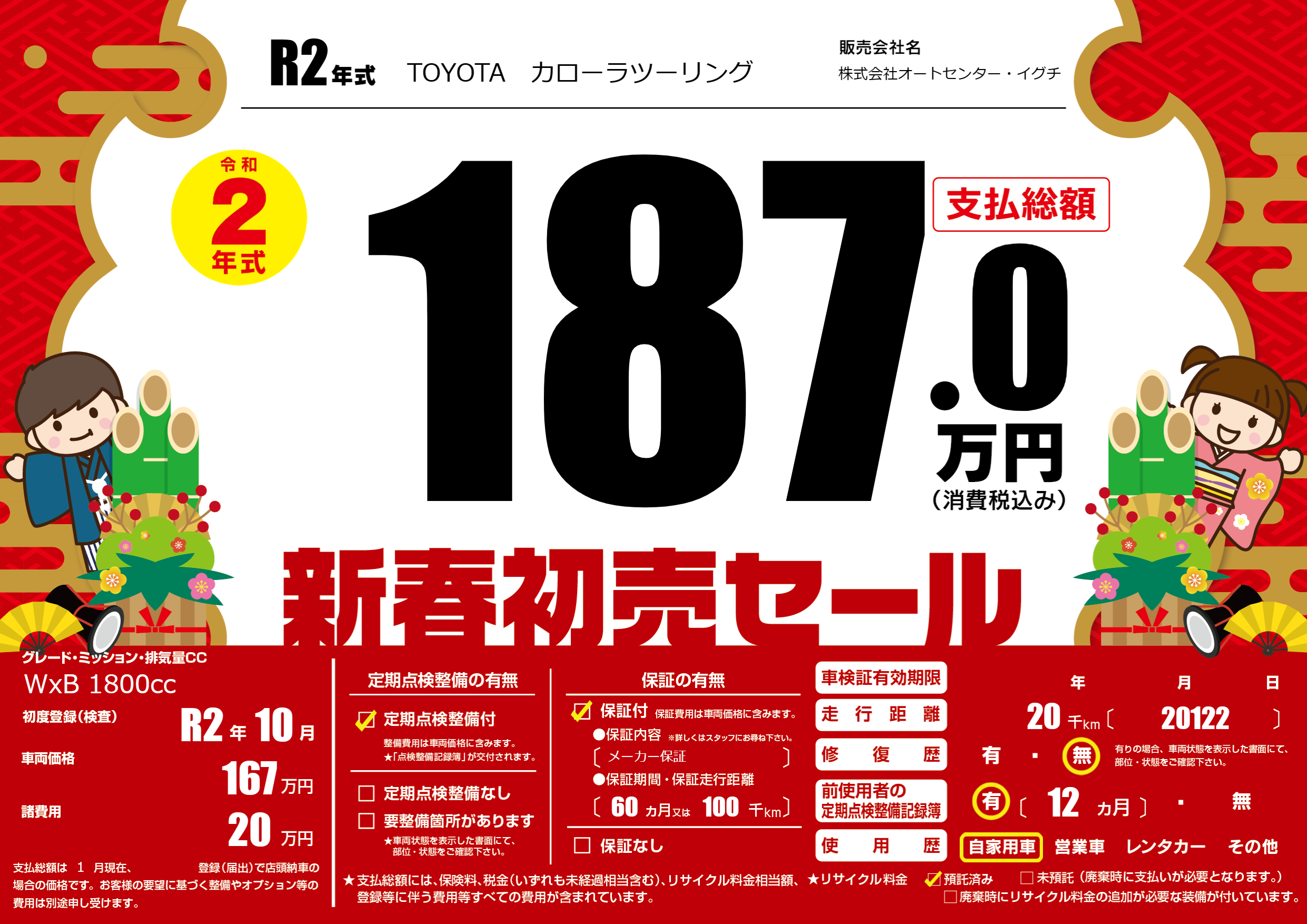 | 走行キロ | 2万km | 初年度登録 | R2年10月 |