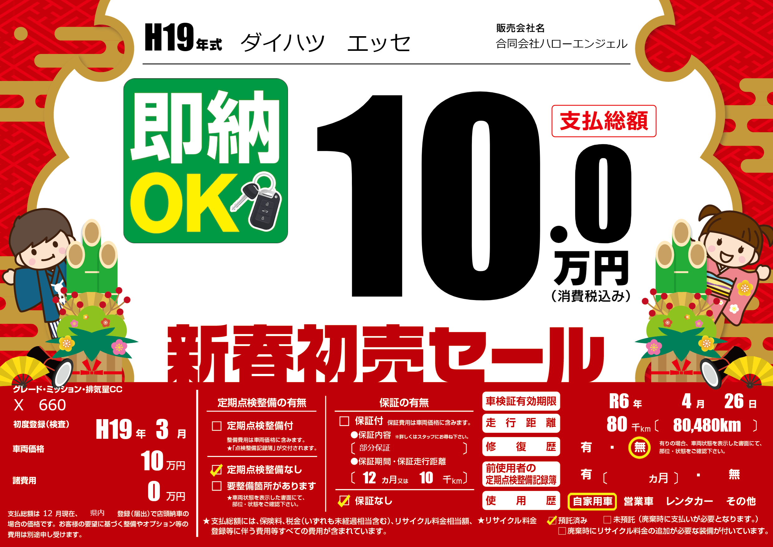 | 車名 | ダイハツ エッセ | グレード ミッション 排気量 |