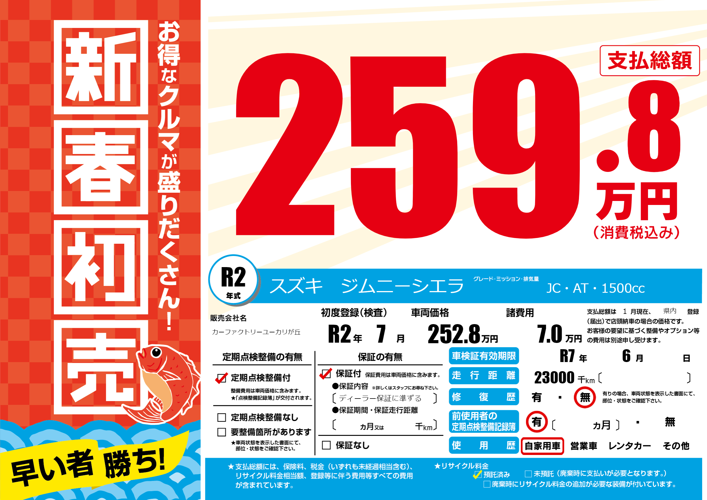 | 車名 | スズキ ジムニーシエラ | グレード ミッション 排気量 |