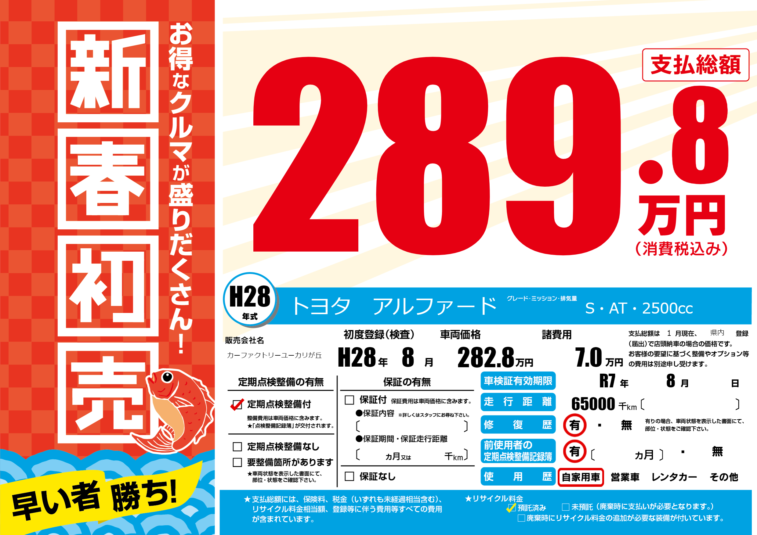 | 走行キロ | 6500万km | 初年度登録 | H28年8月 |