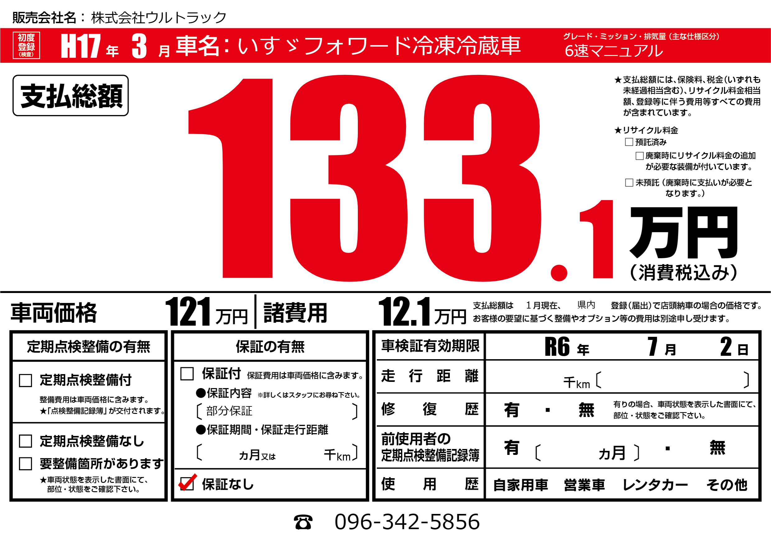 なし | 車検制限 | R6年7月2月 |