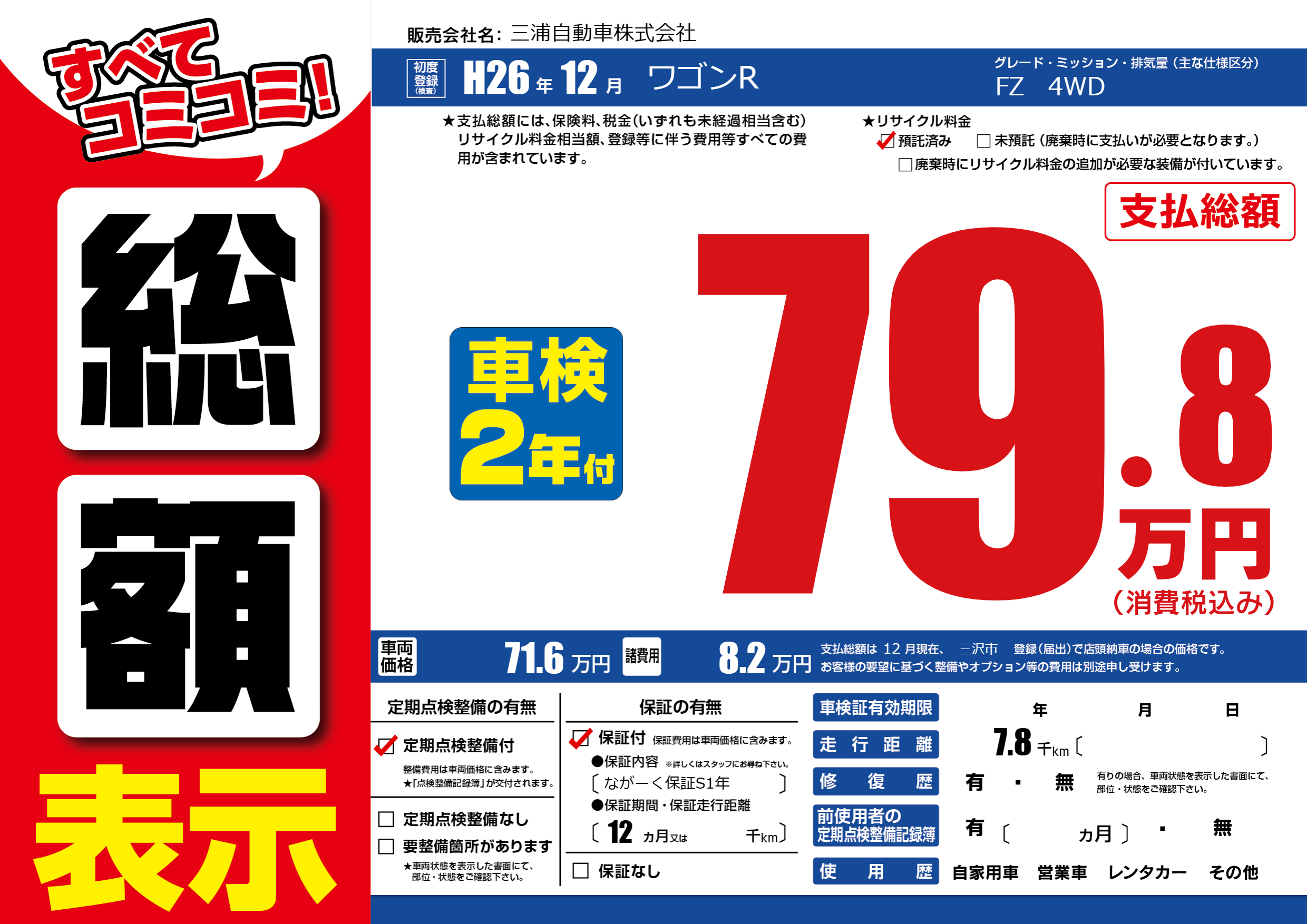 | 車名 | ワゴンR | グレード ミッション 排気量 |