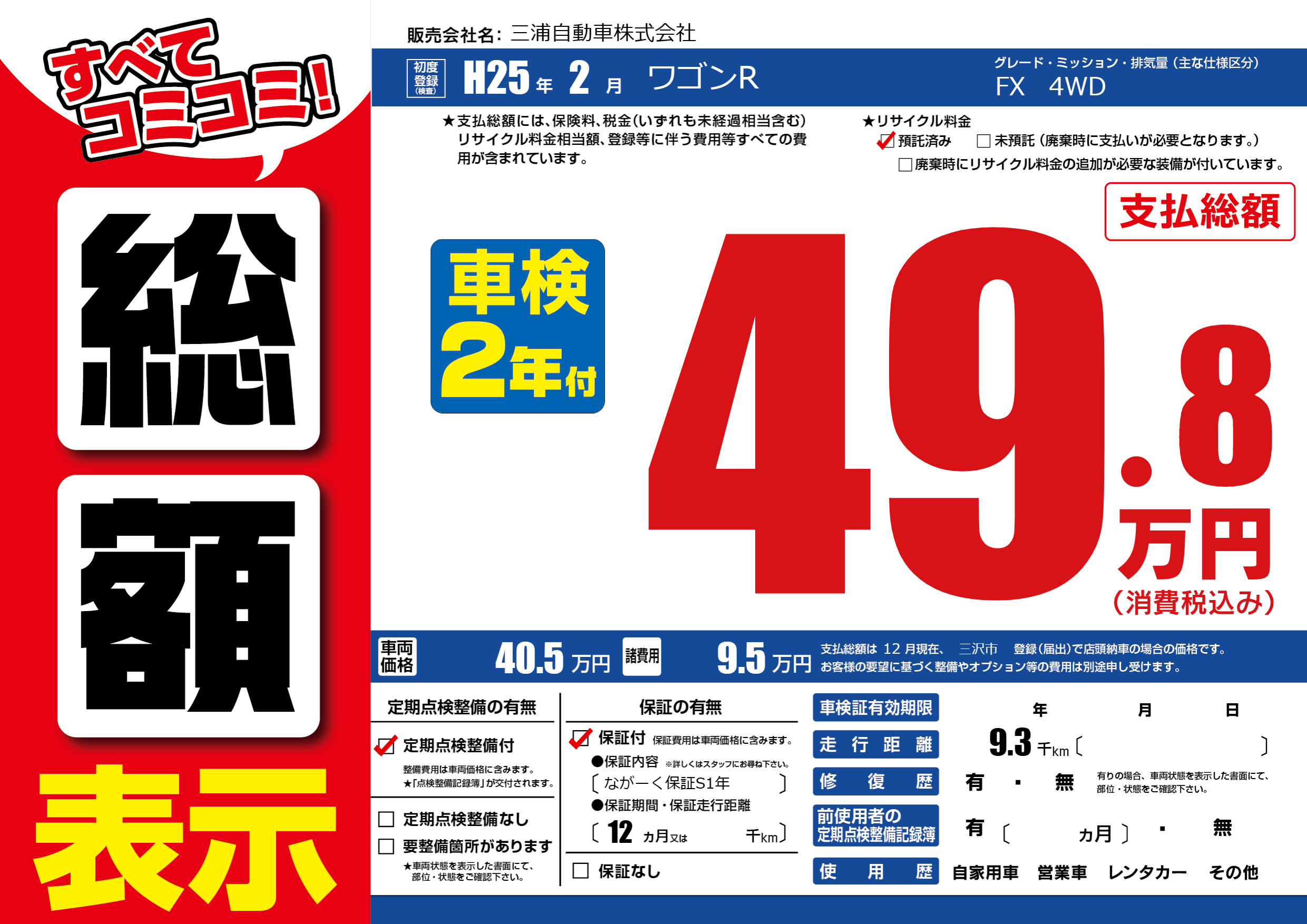 | 車名 | ワゴンR | グレード ミッション 排気量 |
