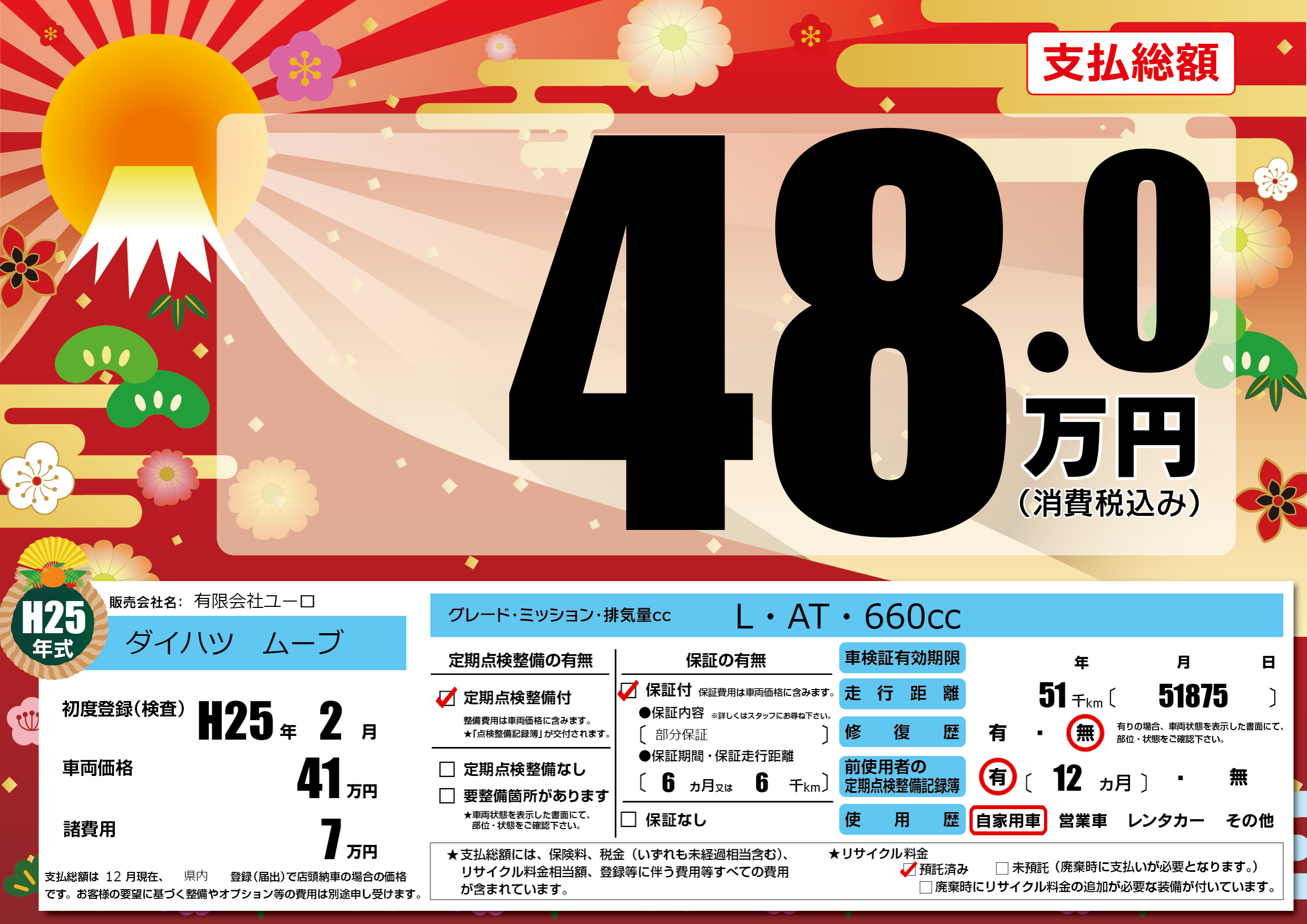 | 走行キロ | 5.1万km | 初年度登録 | H25年2月 |