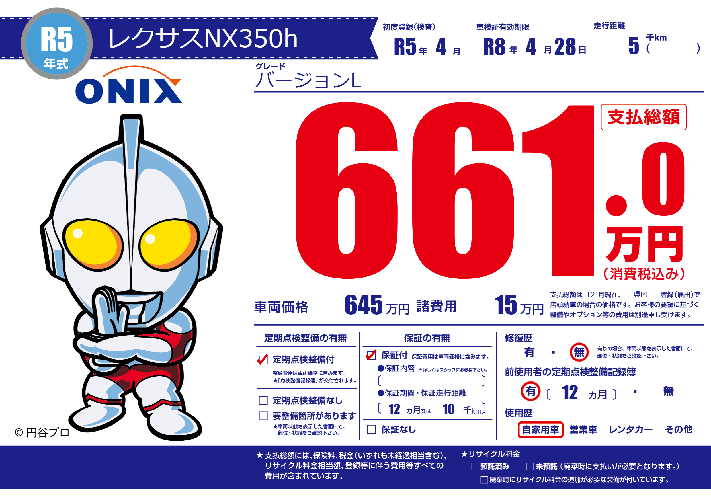 | 走行キロ | 0.5万km | 初年度登録 | R5年4月 |