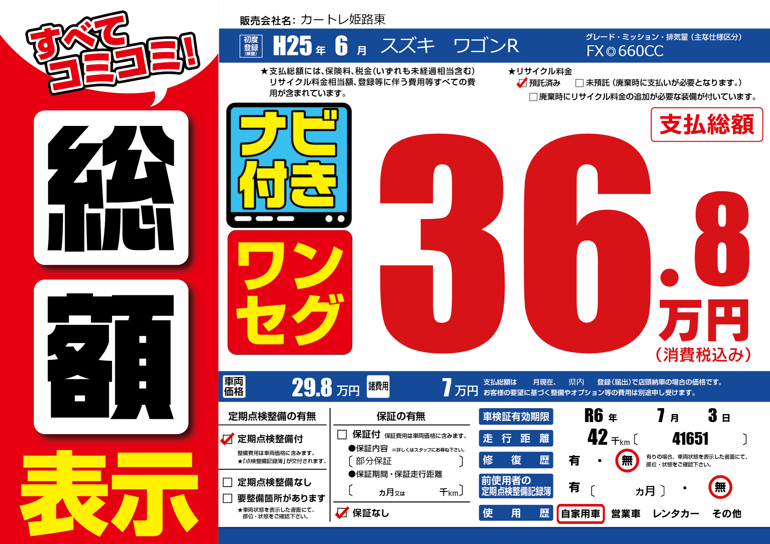 | 車検制限 | R6年 7月 3日 | ||