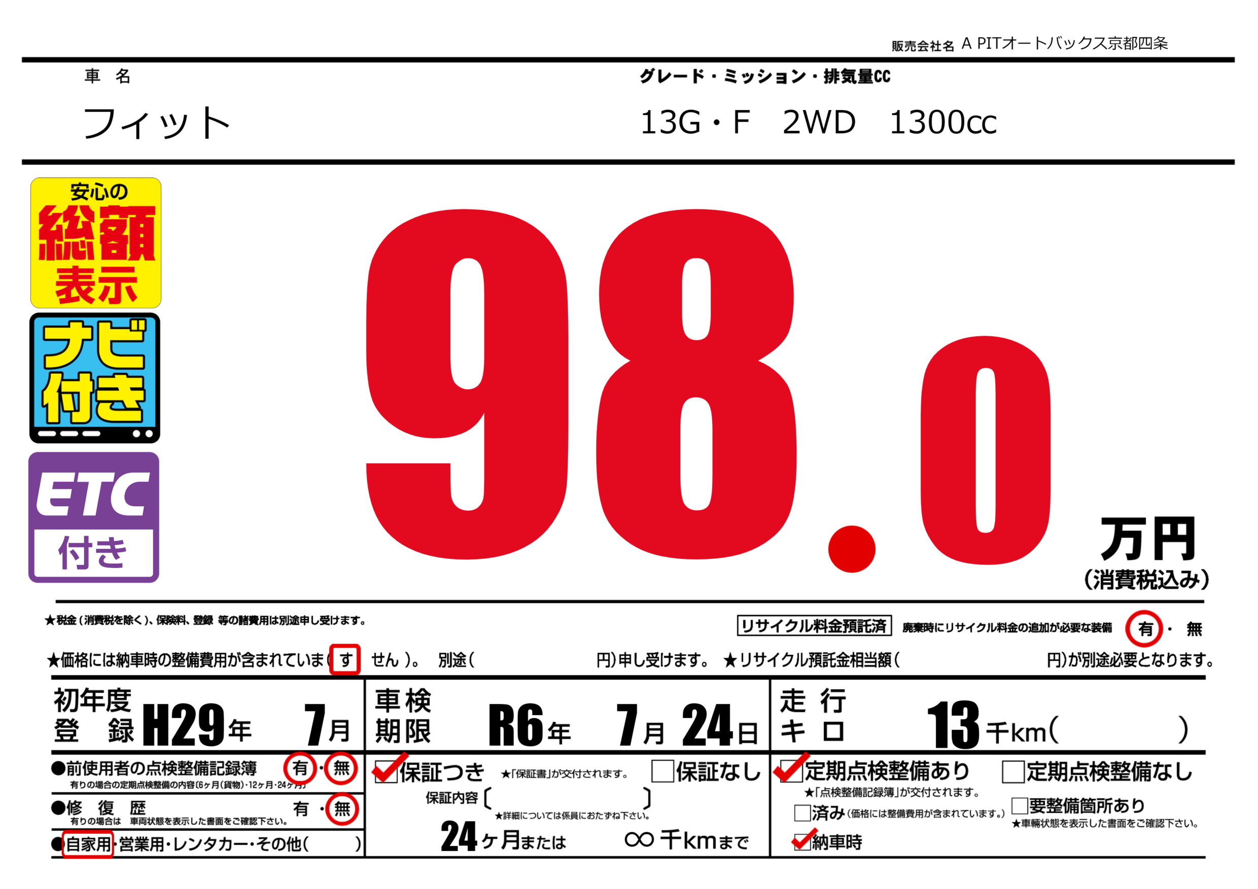 | 定期点検整備 | 定期点検整備あり 納車時あり | ||