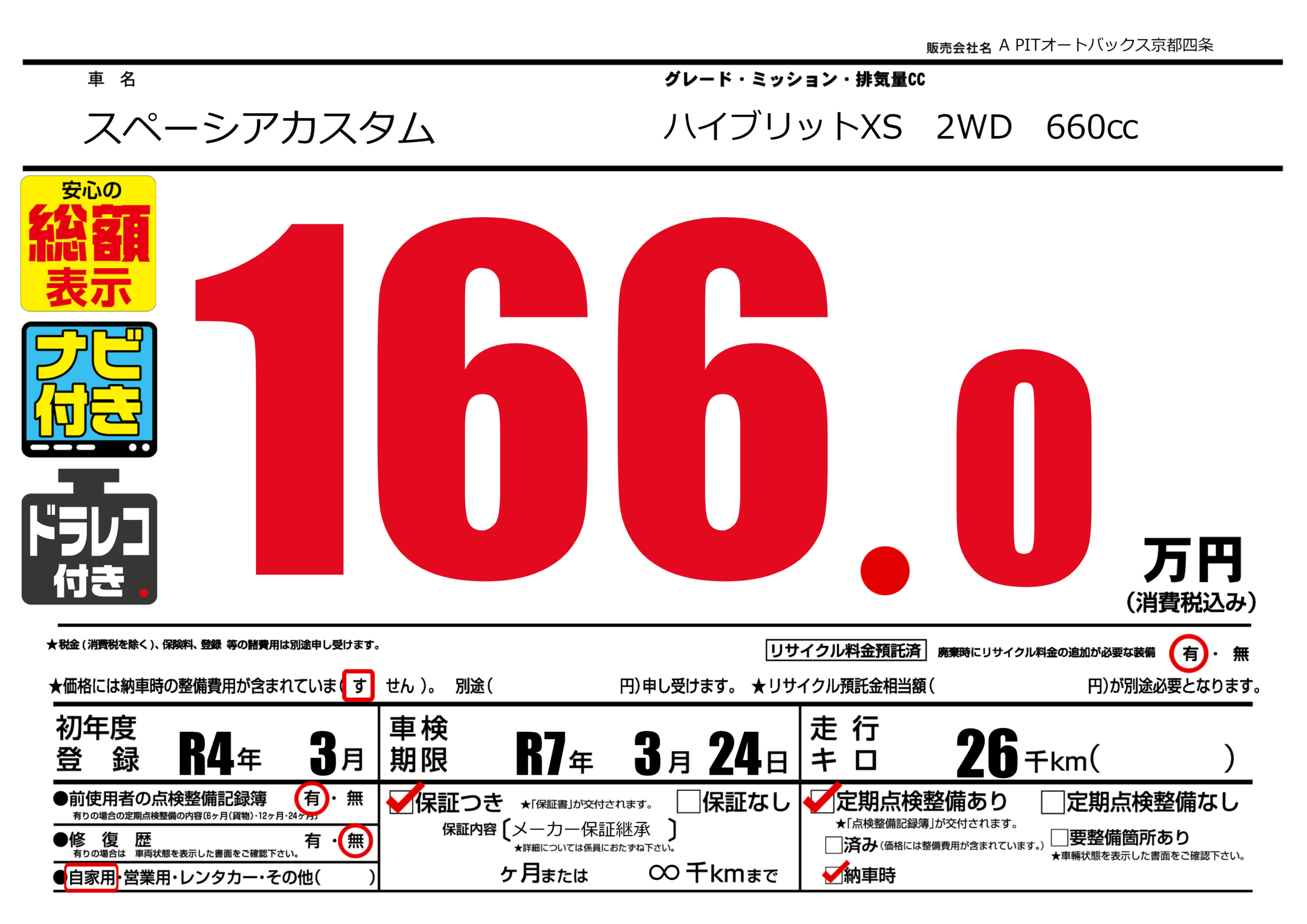 | 車検制限 | R7年 3月 24日 | ||
