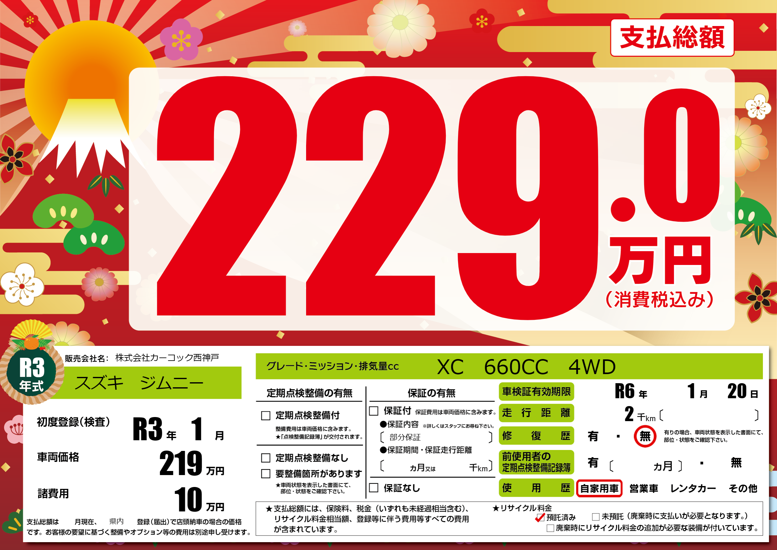 | 走行キロ | 0.2万km | 初年度登録 | R3年1月 |
