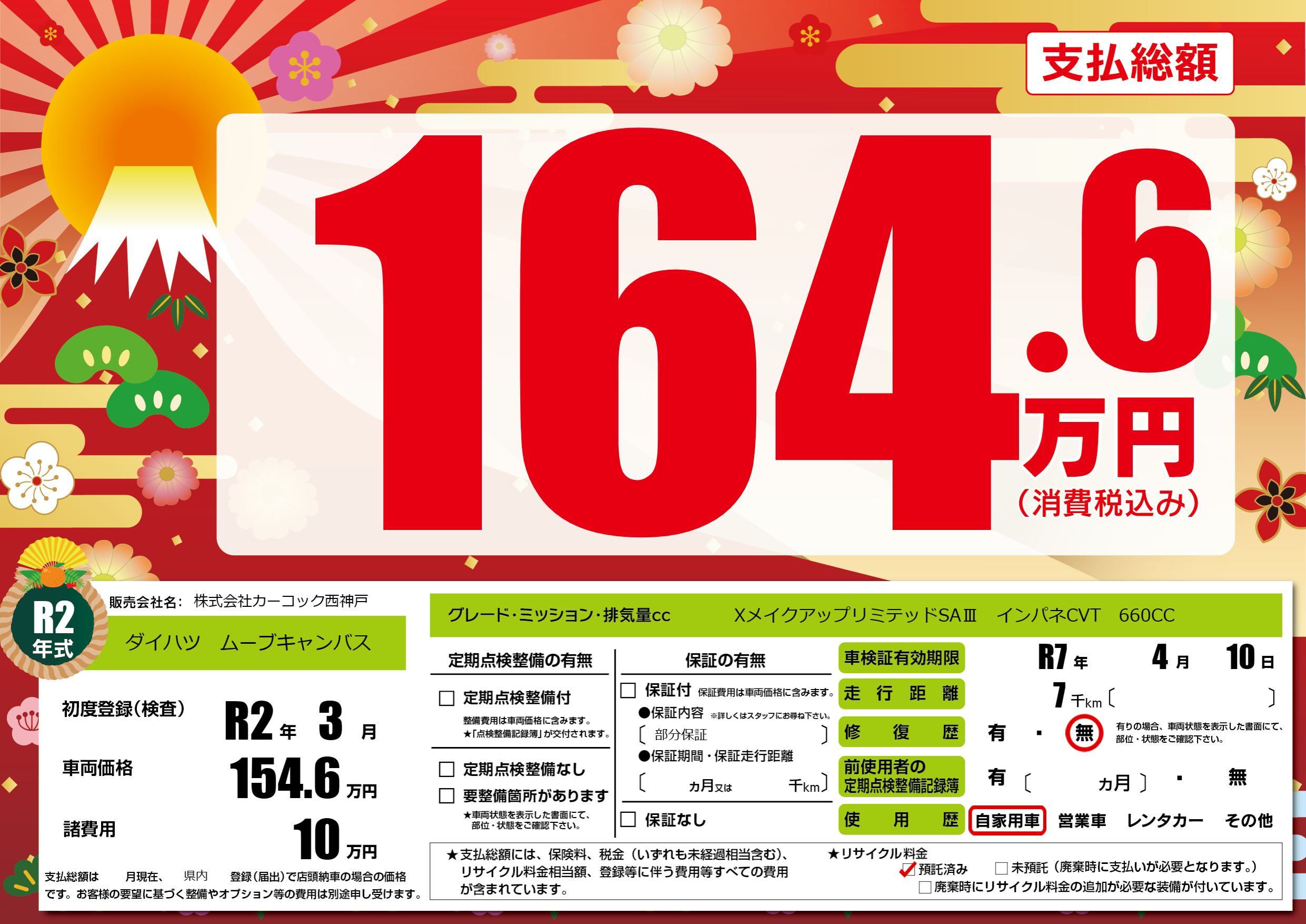 | 走行キロ | 0.7万km | 初年度登録 | R2年3月 |