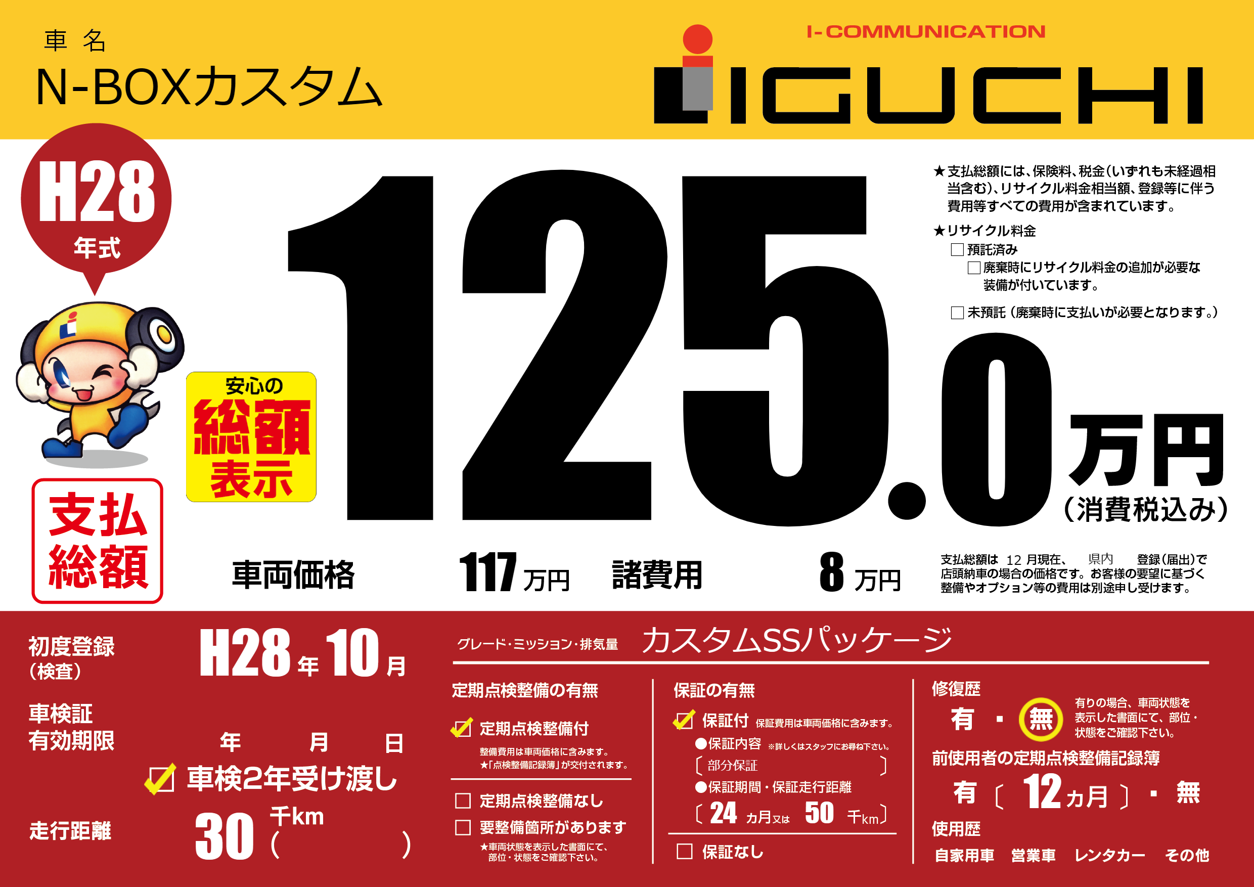 | 走行キロ | 3万km | 初年度登録 | H28年10月 |