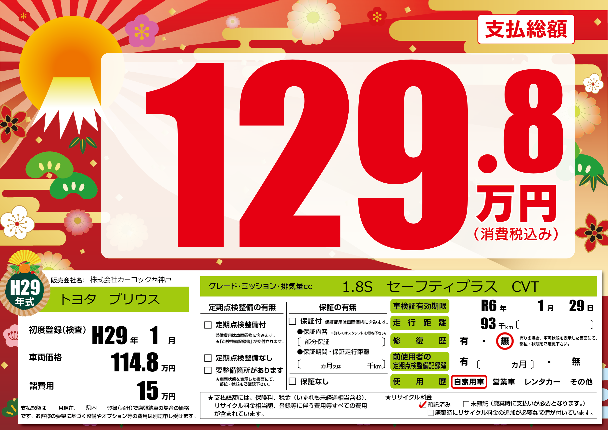 | 車検制限 | R6年 1月 29日 | ||