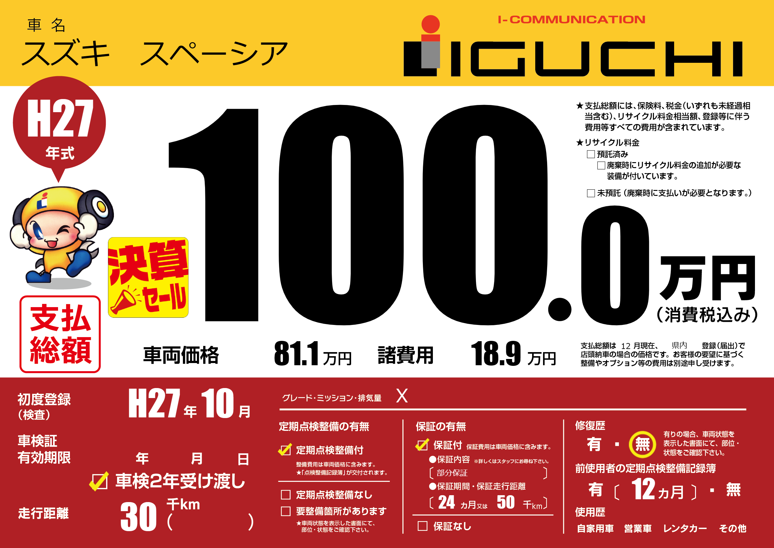 保証付き 保証内容(部分保証) 24ヶ月または(50)千kmまで |