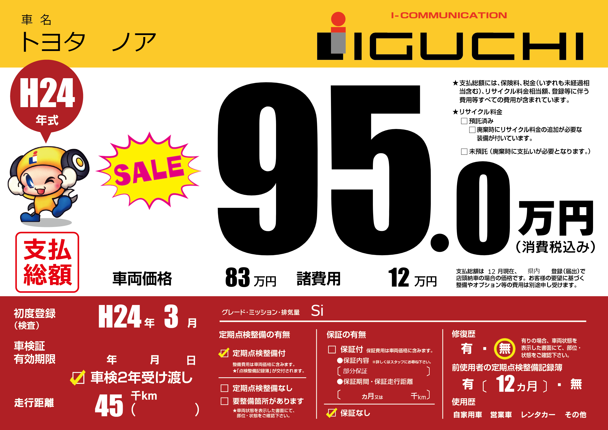 | 走行キロ | 4.5万km | 初年度登録 | H24年3月 |