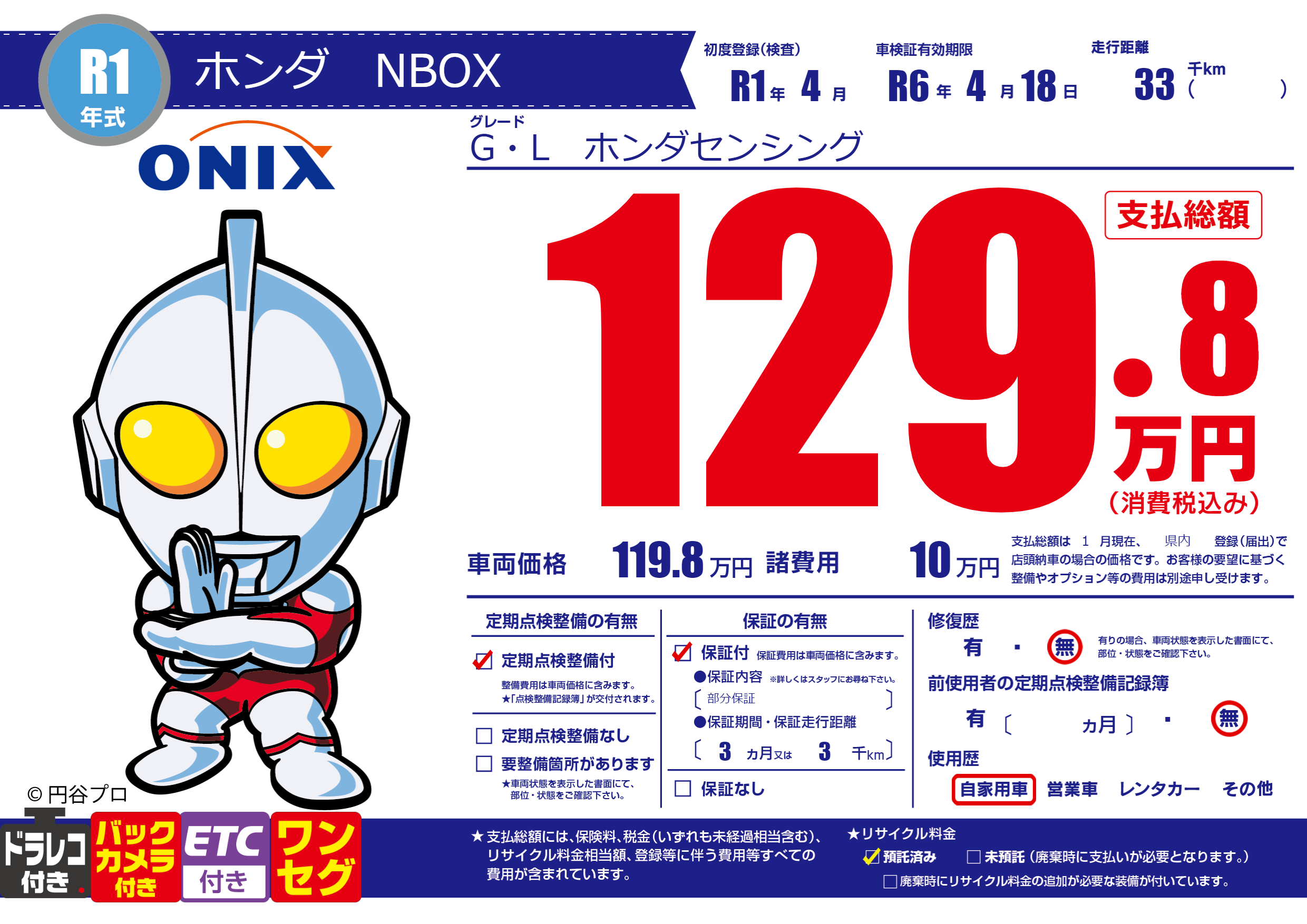 | 走行キロ | 3.3万km | 初年度登録 | R1年4月 |