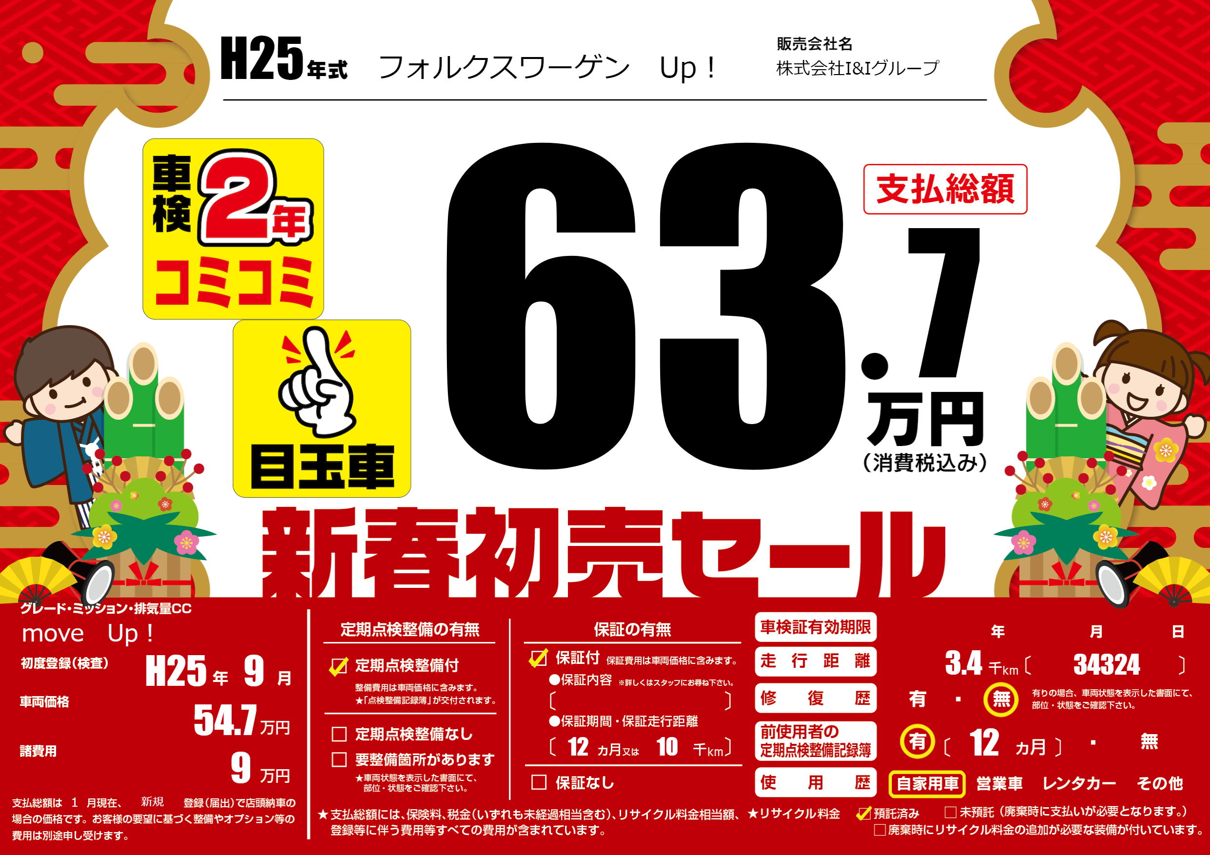 | 車名 | フォルクスワーゲン Up! | グレード ミッション 排気量 |