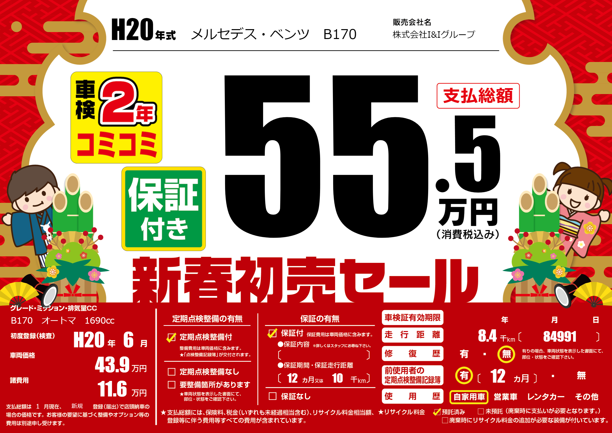 | 車名 | メルセデス・ベンツ B170 | グレード ミッション 排気量 |