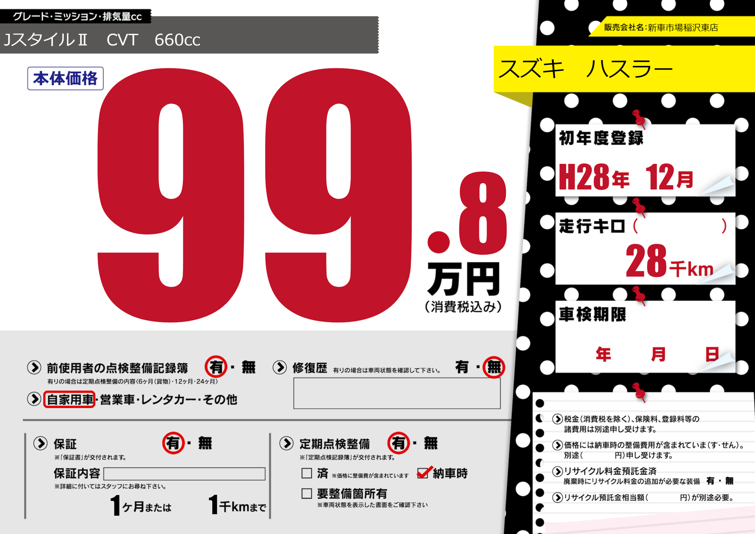| 定期点検整備 | 定期点検整備あり 納車時あり | ||