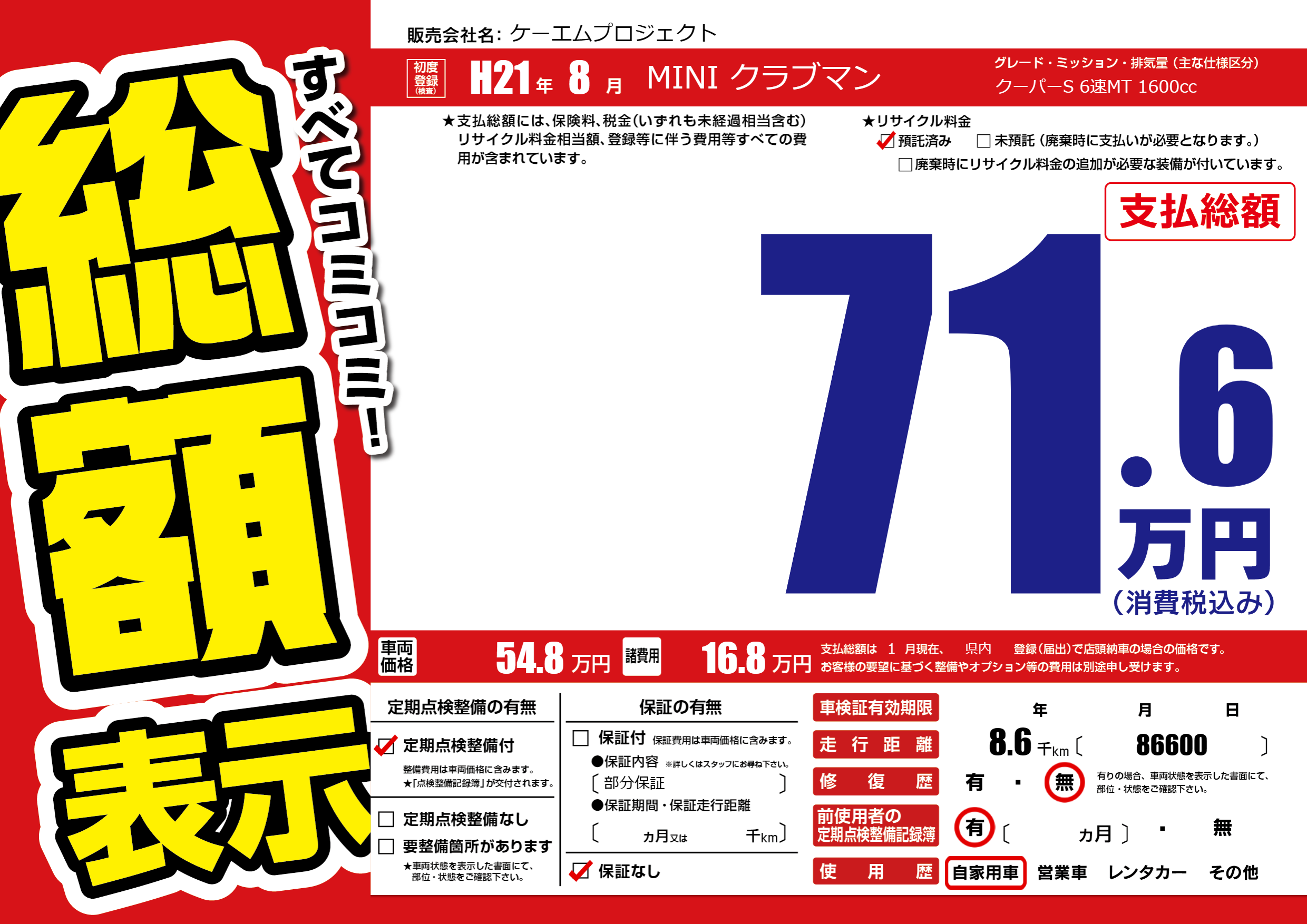 | 車検制限 | - 年 - 月 - 日 | ||