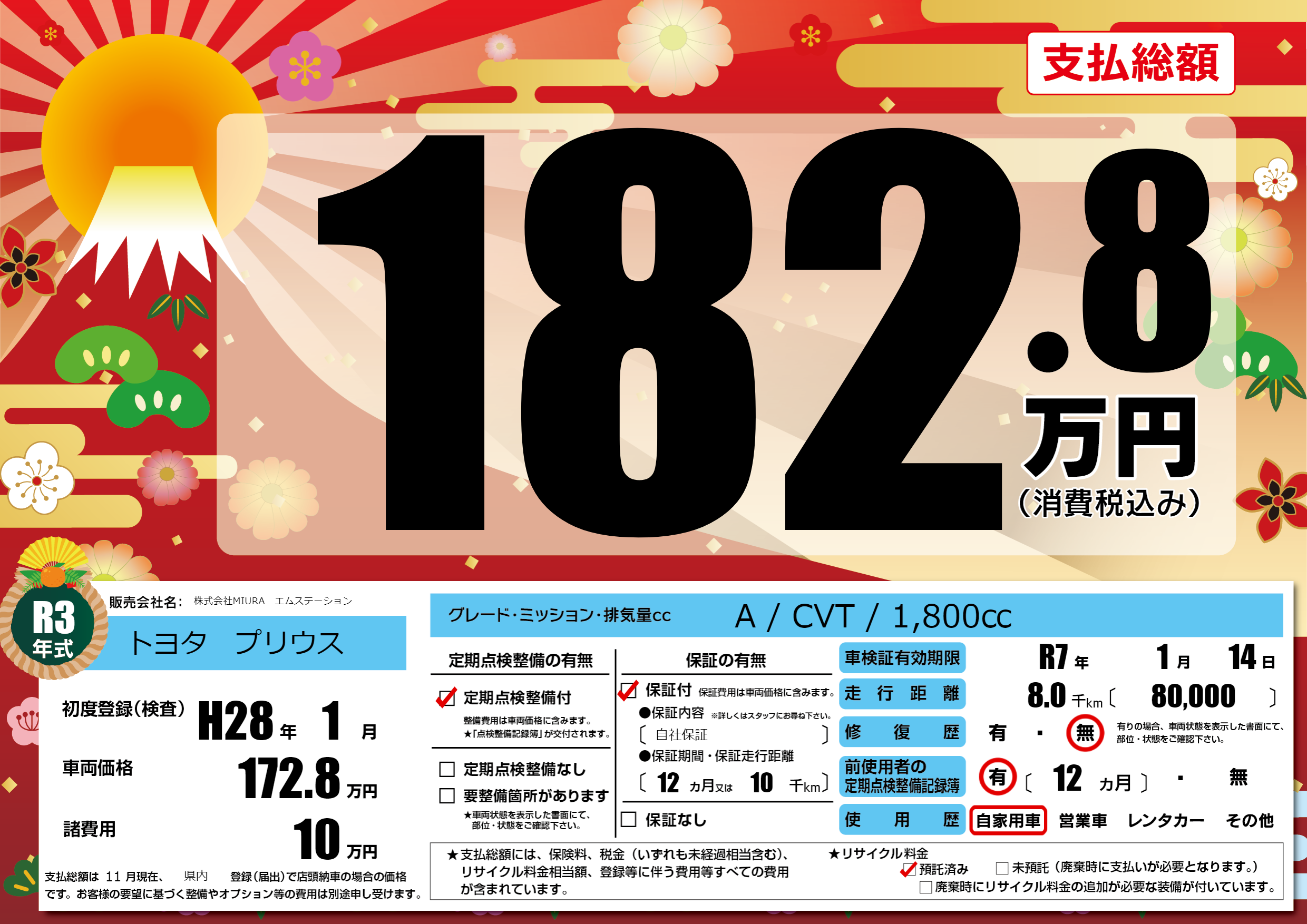 | 車検制限 | R7年 1月 14日 | ||