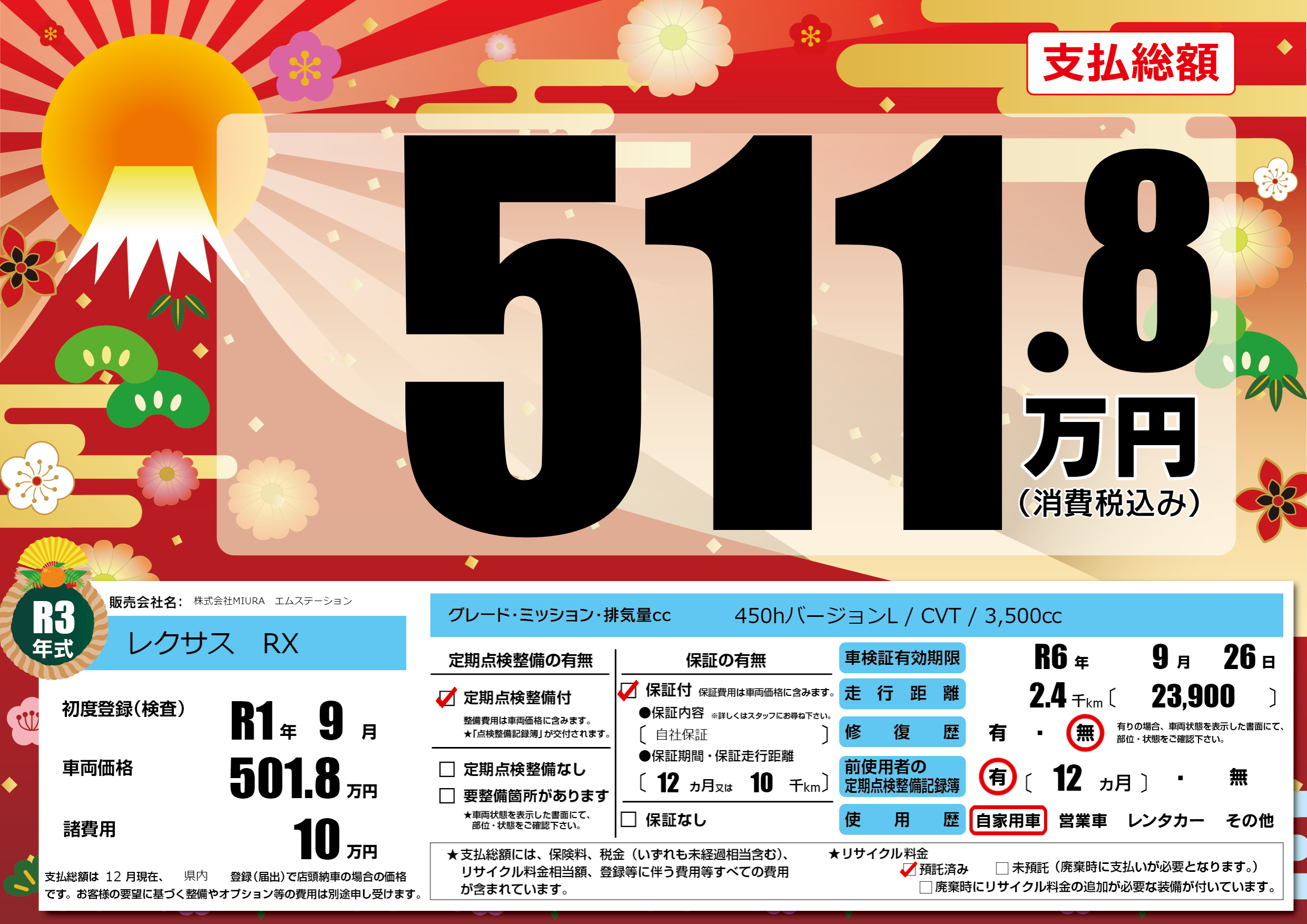 なし | 車検制限 | R6年9月26月 |