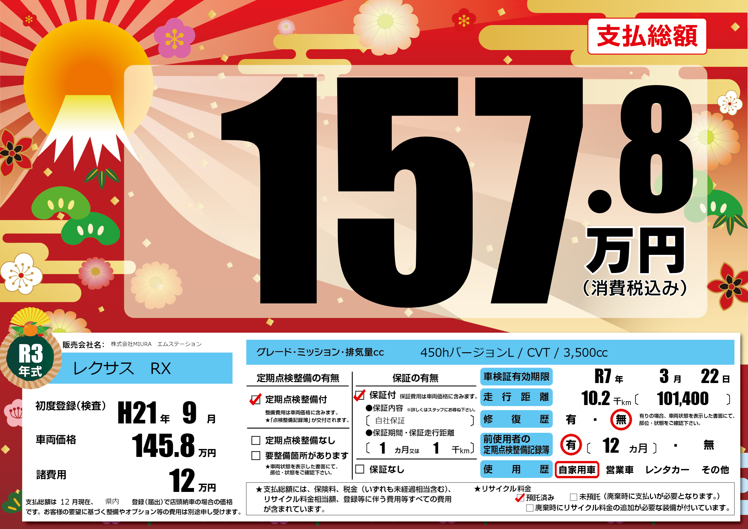 | 車名 | レクサス RX | グレード ミッション 排気量 |