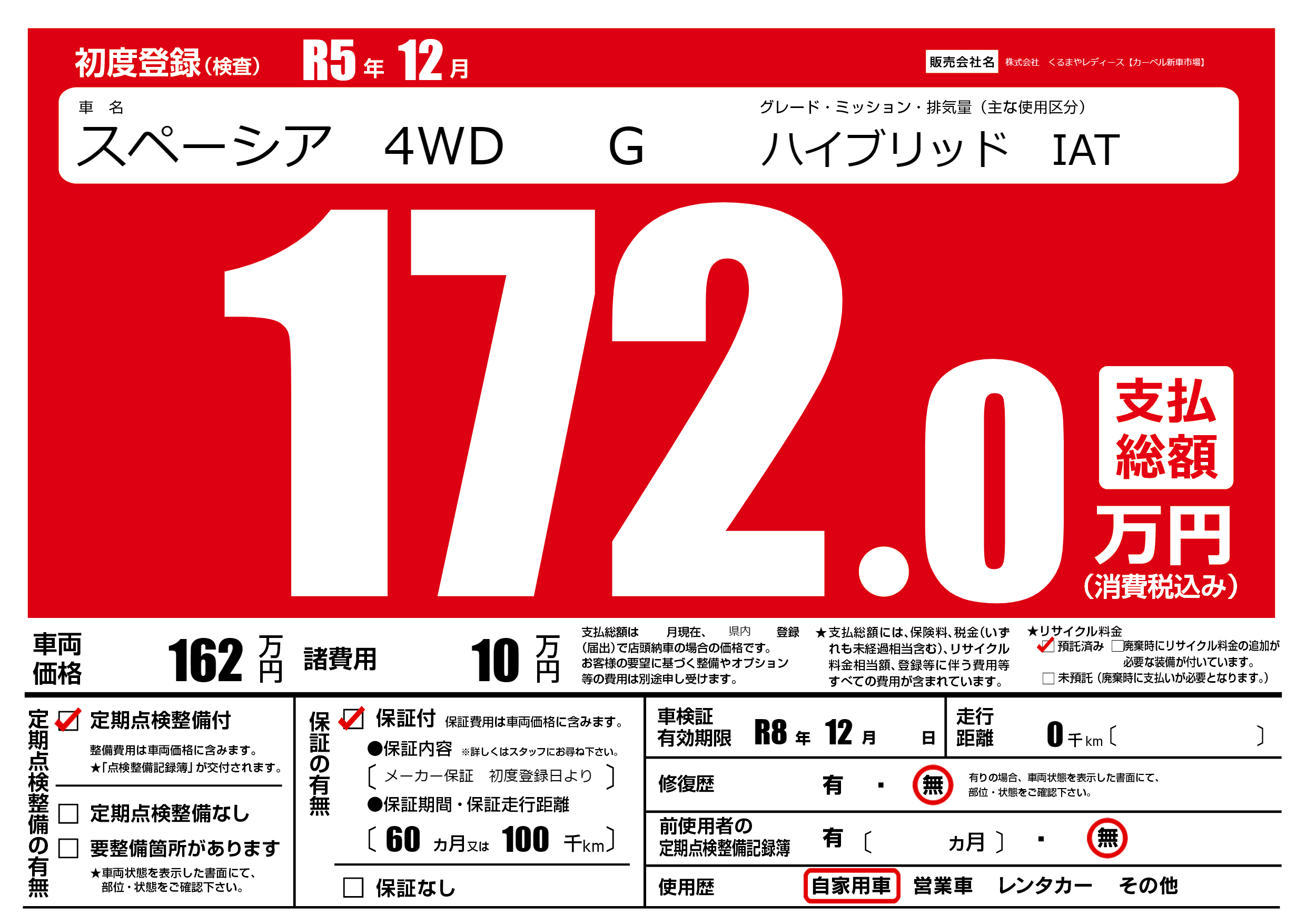 | 走行キロ | - | 初年度登録 | R5年12月 |