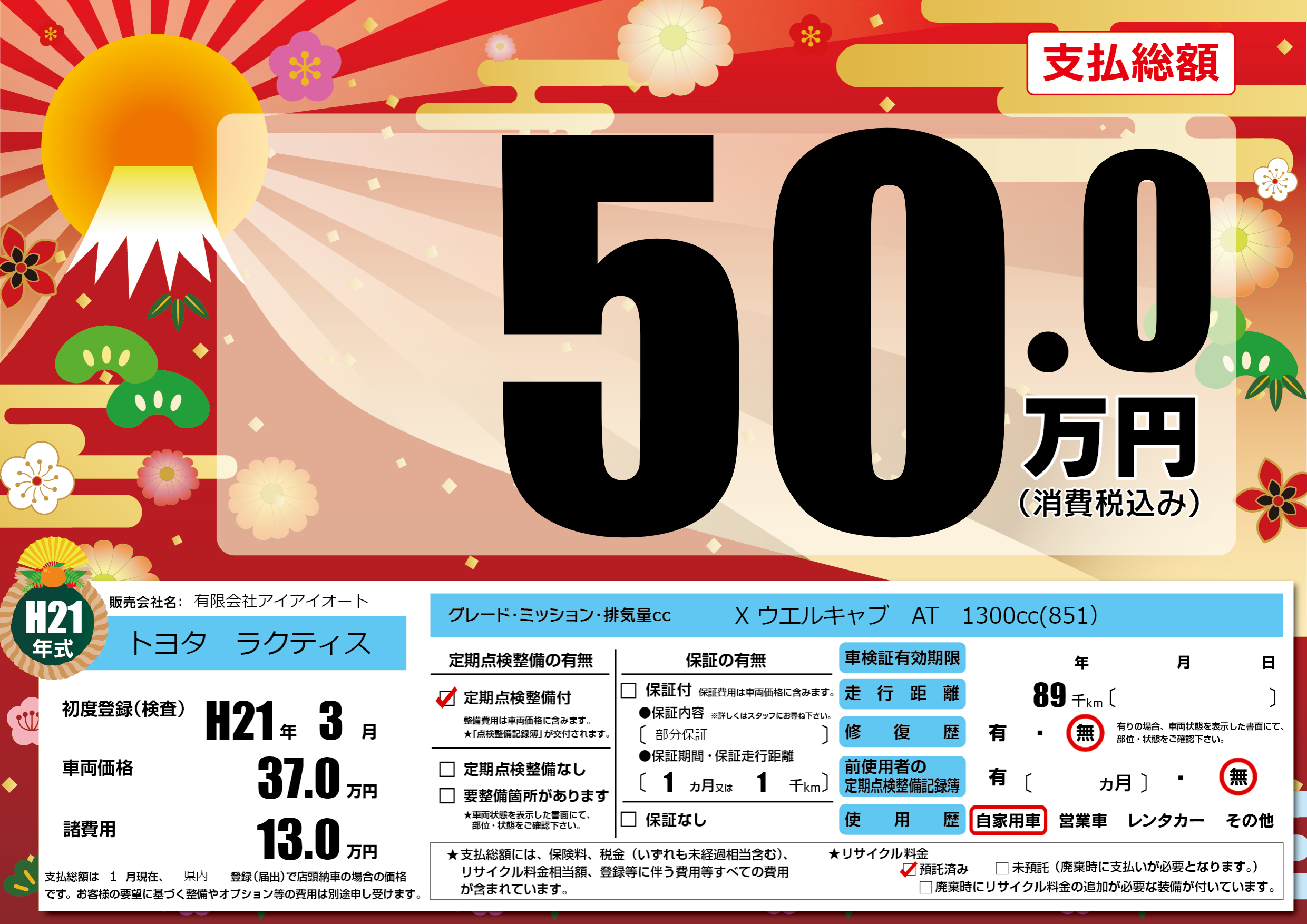 | 車名 | トヨタ ラクティス | グレード ミッション 排気量 |