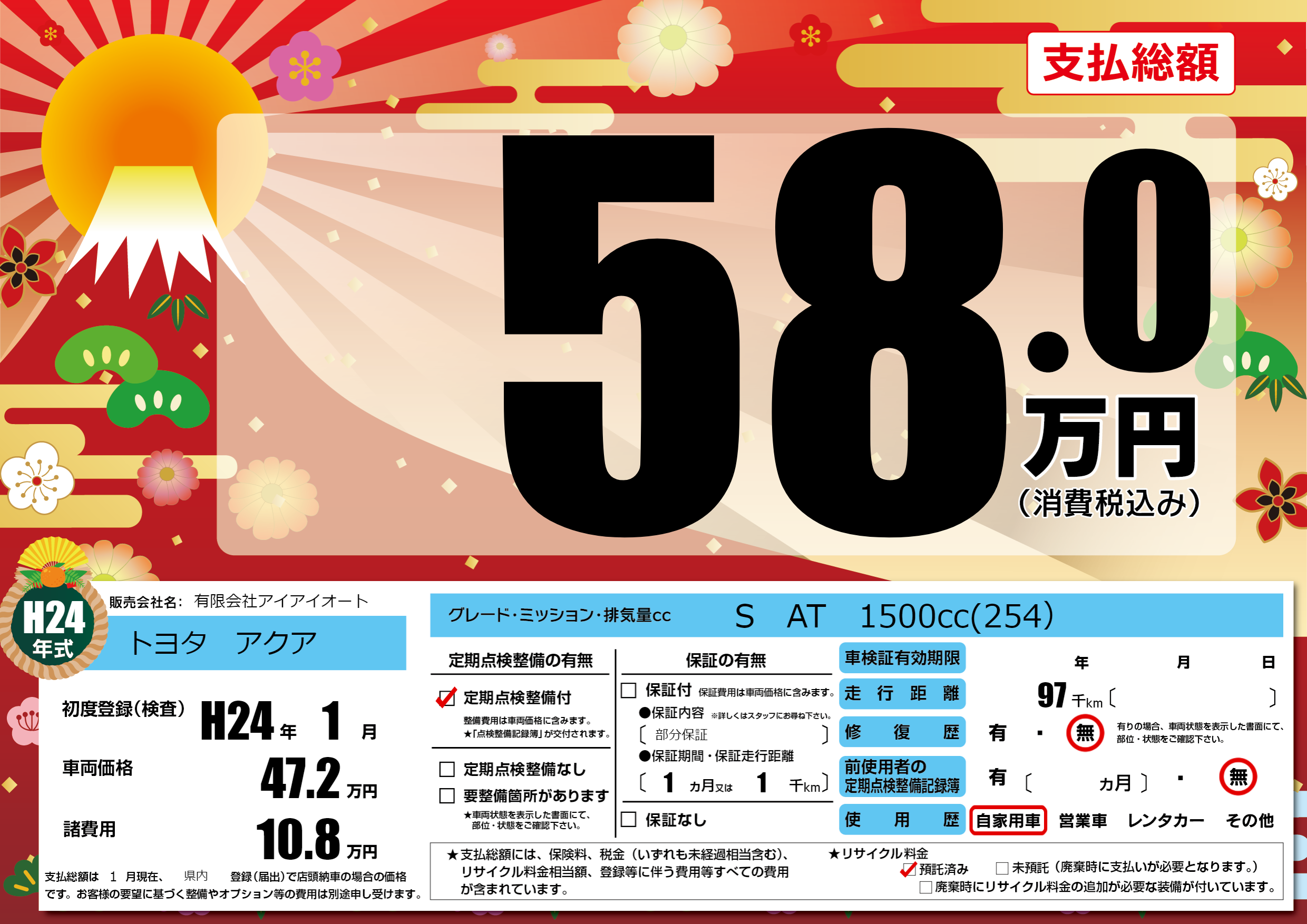 | 走行キロ | 9.7万km | 初年度登録 | H24年1月 |